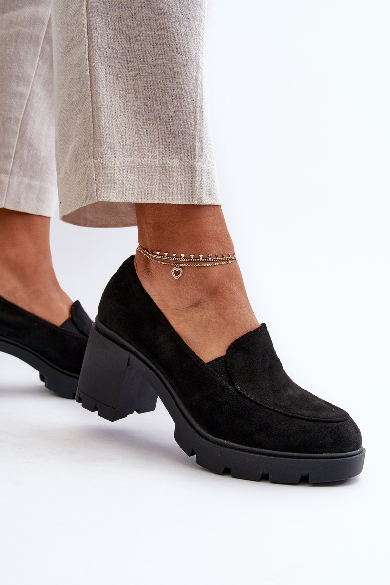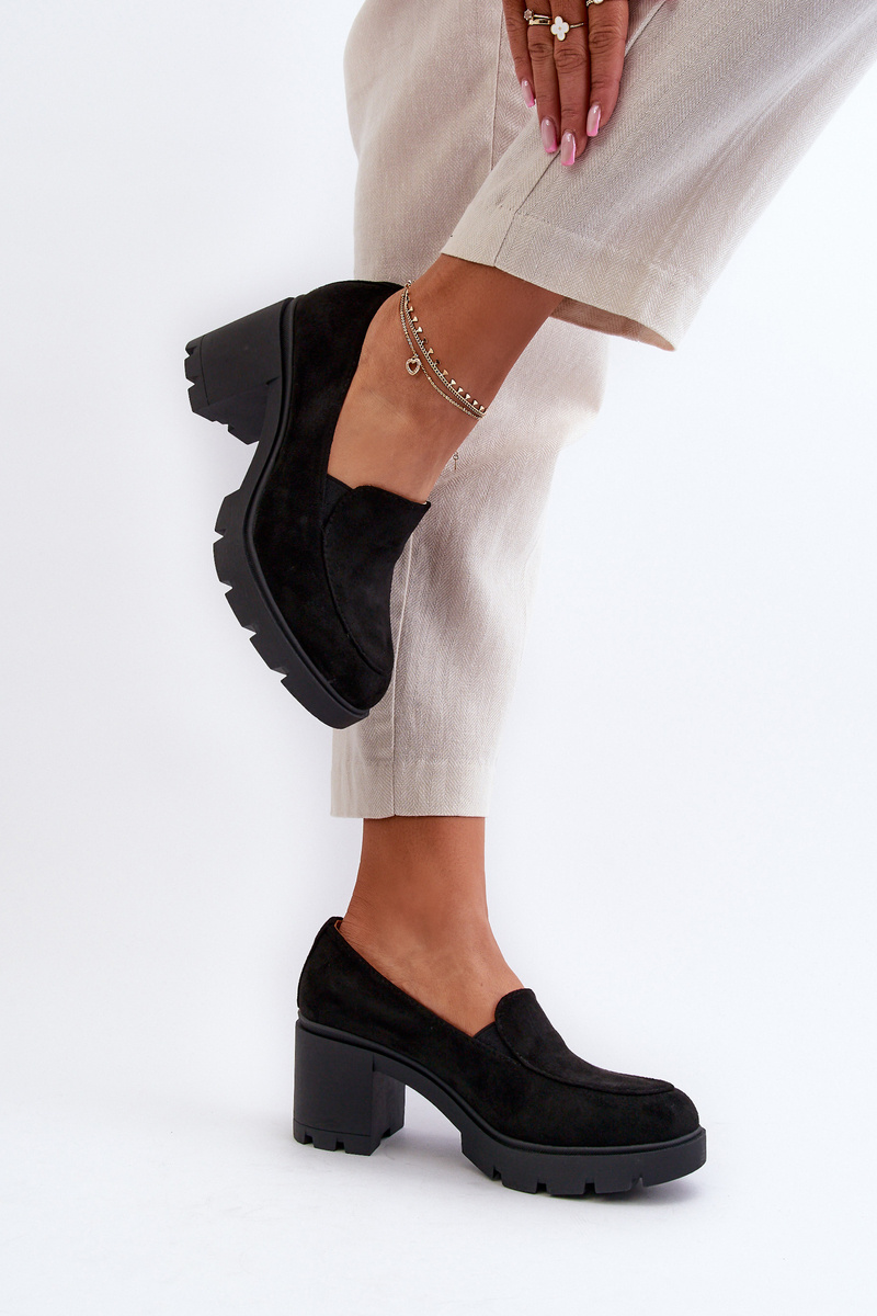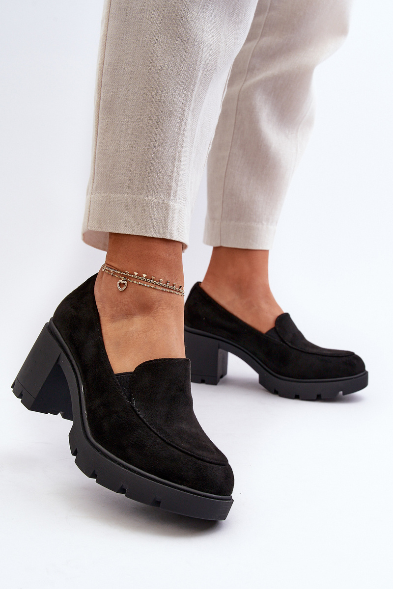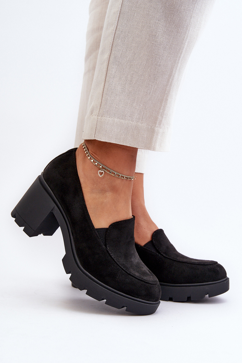 Жіночі еко-замшеві туфлі на підборах і платформі чорного кольору Arablosa