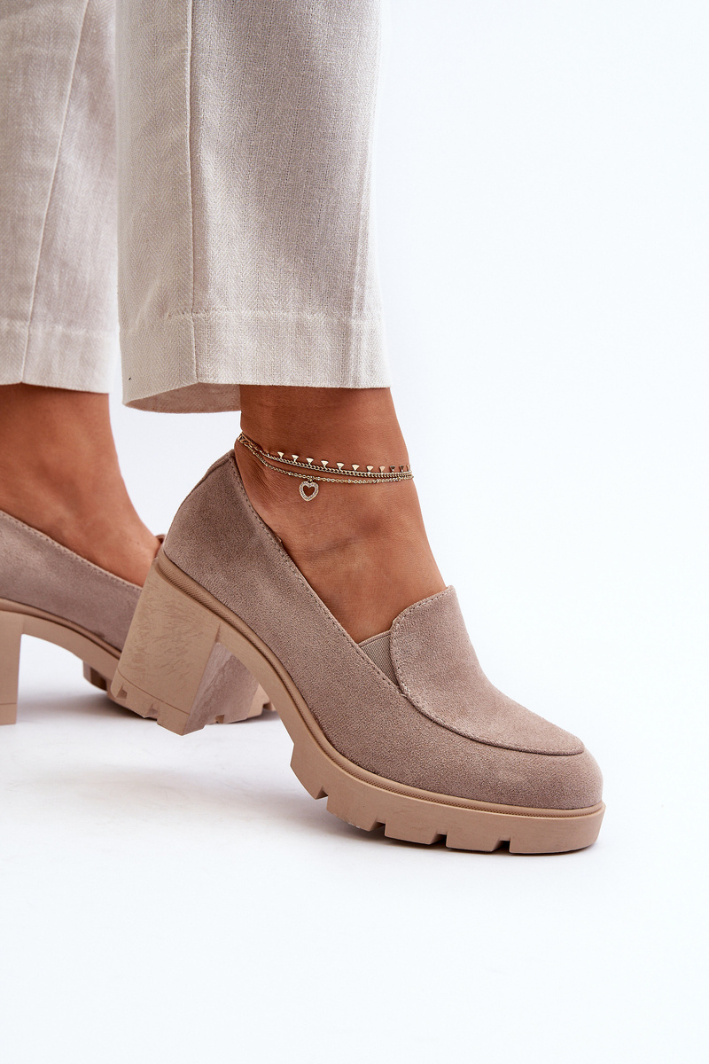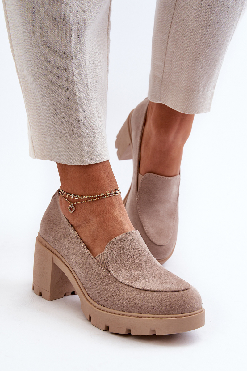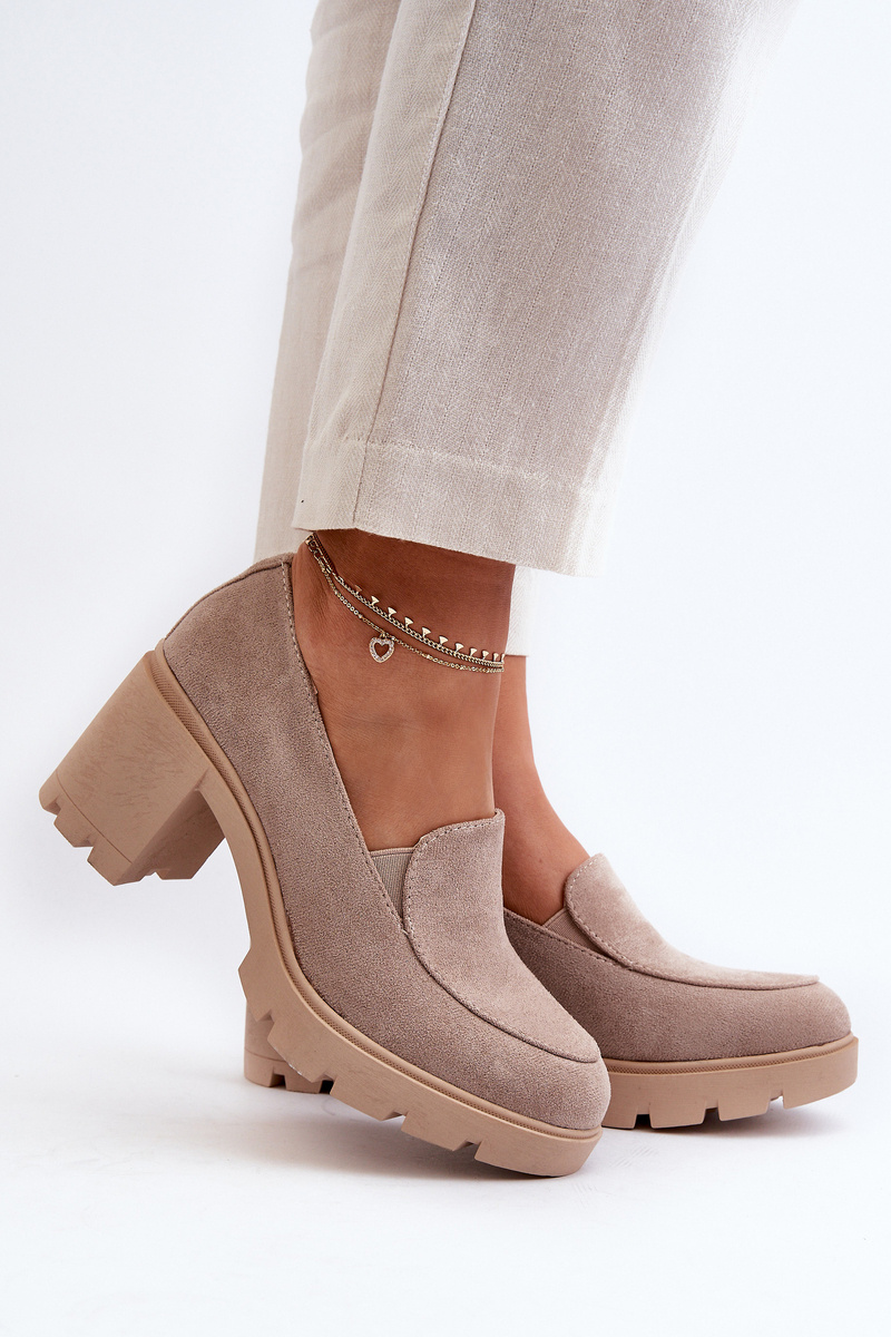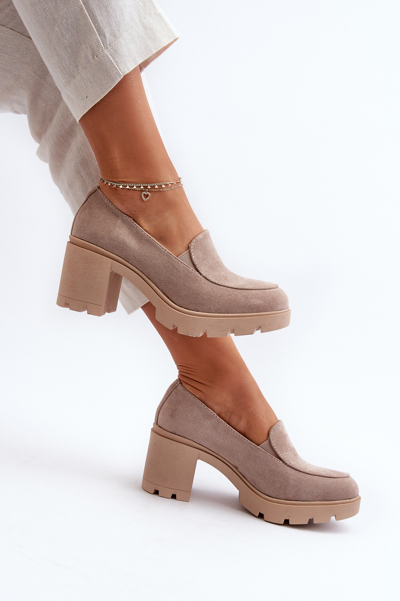 Жіночі еко-замшеві туфлі на підборах і платформі Beige Arablosa