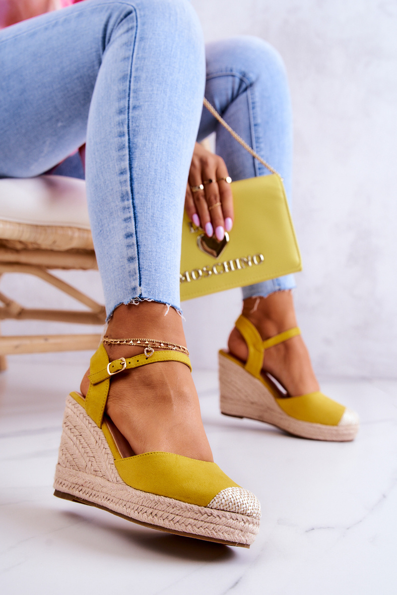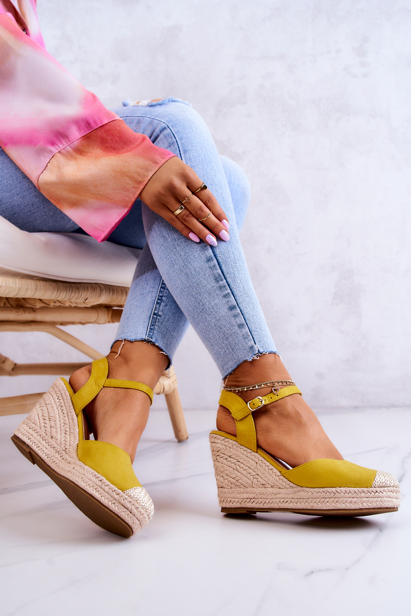 Жіночі еспадрільї на плетеній платформі Канільйо жовтого кольору