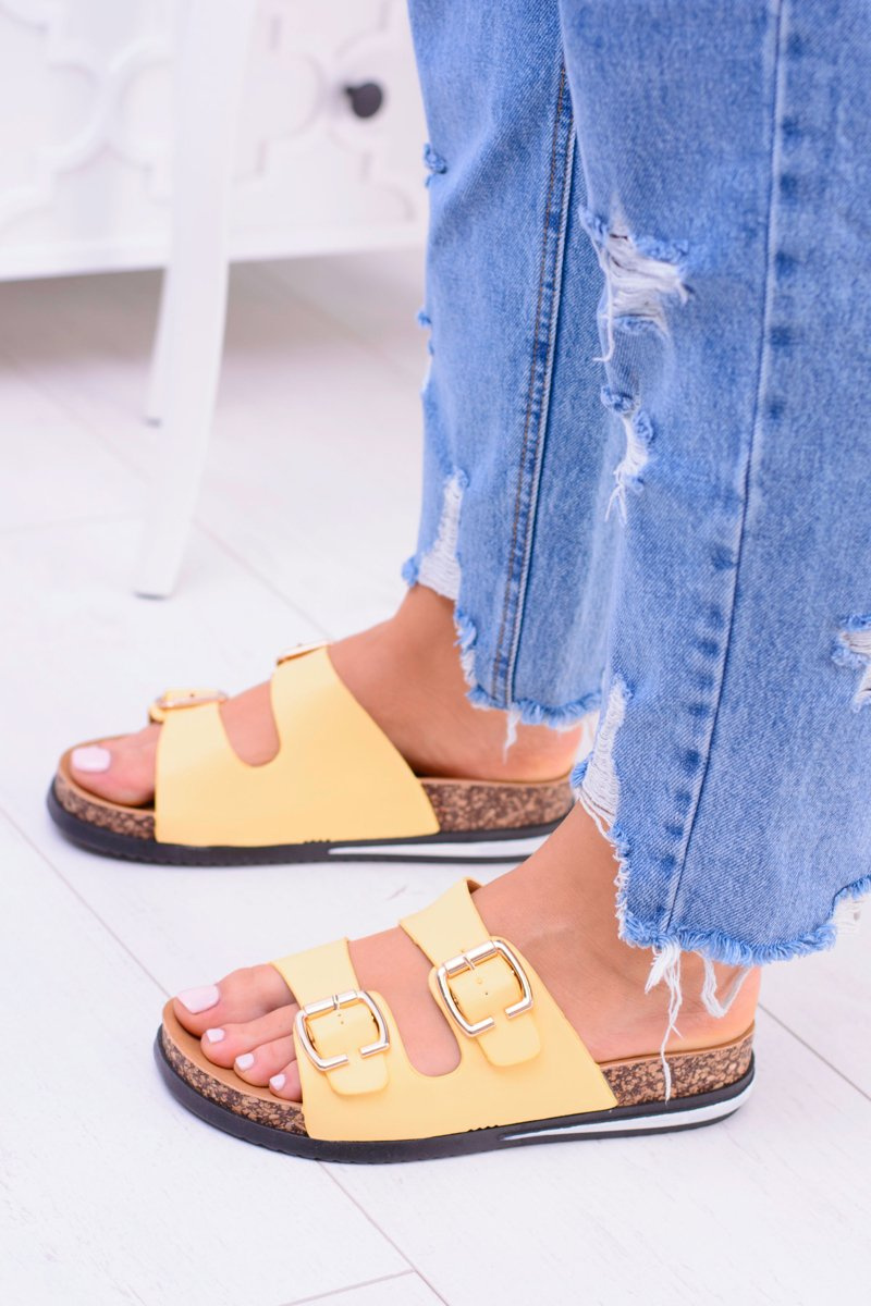 Жіночі жовті шльопанці з пряжками на пробці Ferone