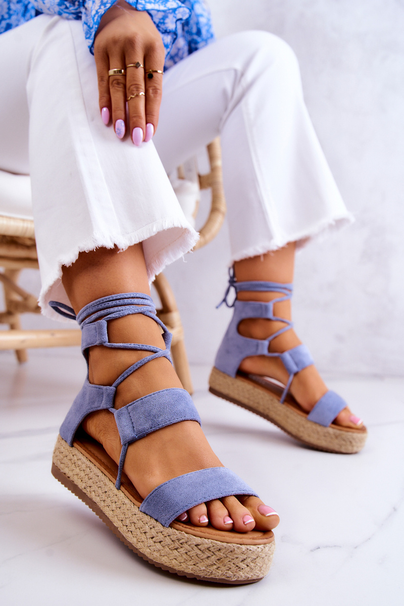 Жіночі зав'язані босоніжки на платформі синього кольору Amrillo