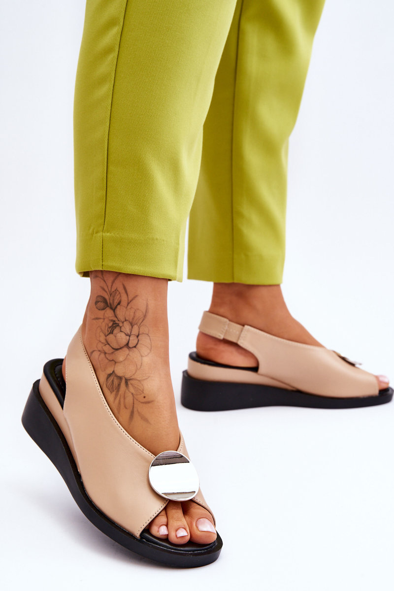Жіночі замшеві босоніжки з пряжкою бежеві Camille