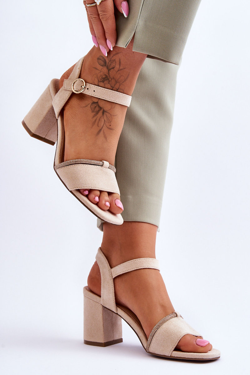Жіночі босоніжки на підборах у вигляді стовпчика. Дана модель виготовлена ​​з приємної на дотик еко замші. Босоніжки застібаються на регульований ремінець з пряжкою. Устілка виготовлена ​​з натуральної шкіри. Він надзвичайно м'який і зручний у використанні. Ви обов'язково повинні їх мати! Обираючи розмір, орієнтуйтеся на таблицю розмірів.