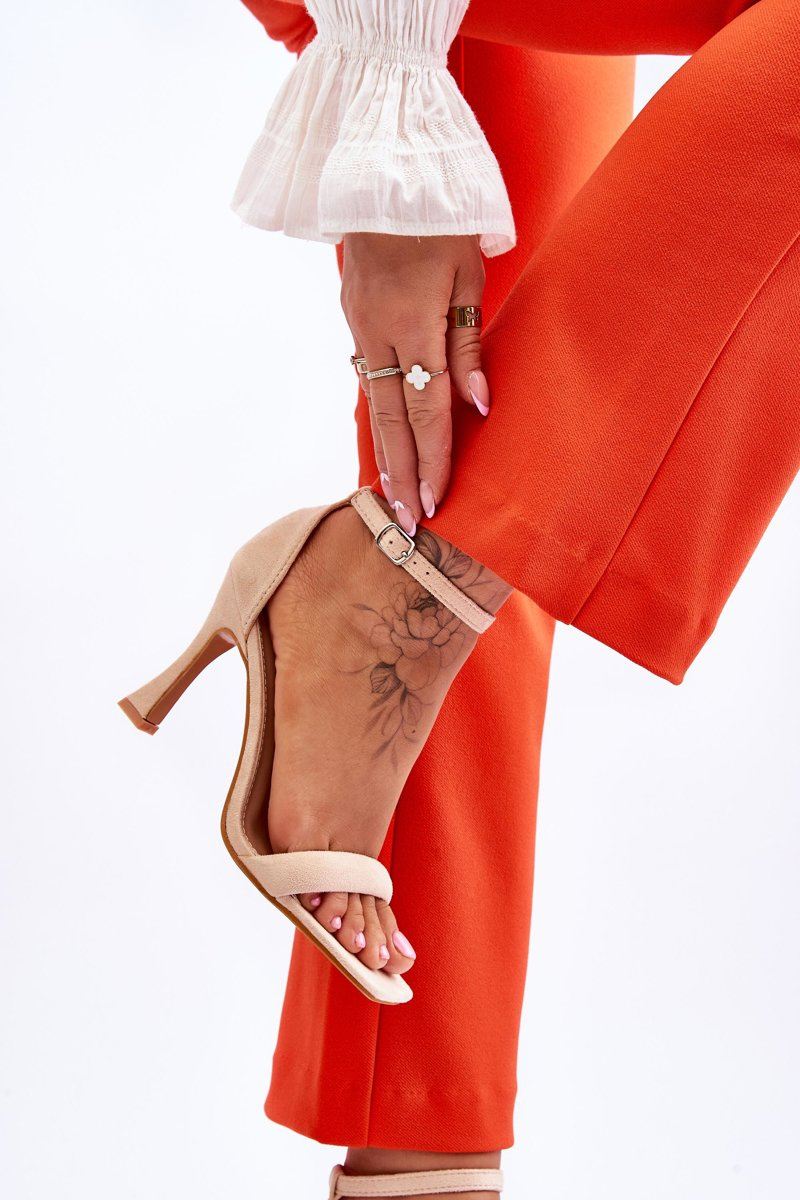 Красиві жіночі босоніжки з приємної на дотик еко замші. Ремінець спереду та п’ятка посилені. Модель з регульованим ремінцем, що застібається на пряжку. М'яка устілка з екошкіри забезпечить комфорт під час використання взуття. Босоніжки встановлювалися на каблук у вигляді шпильки. Чудова модель для сукні або елегантних брюк. Обираючи розмір, орієнтуйтеся на таблицю розмірів.