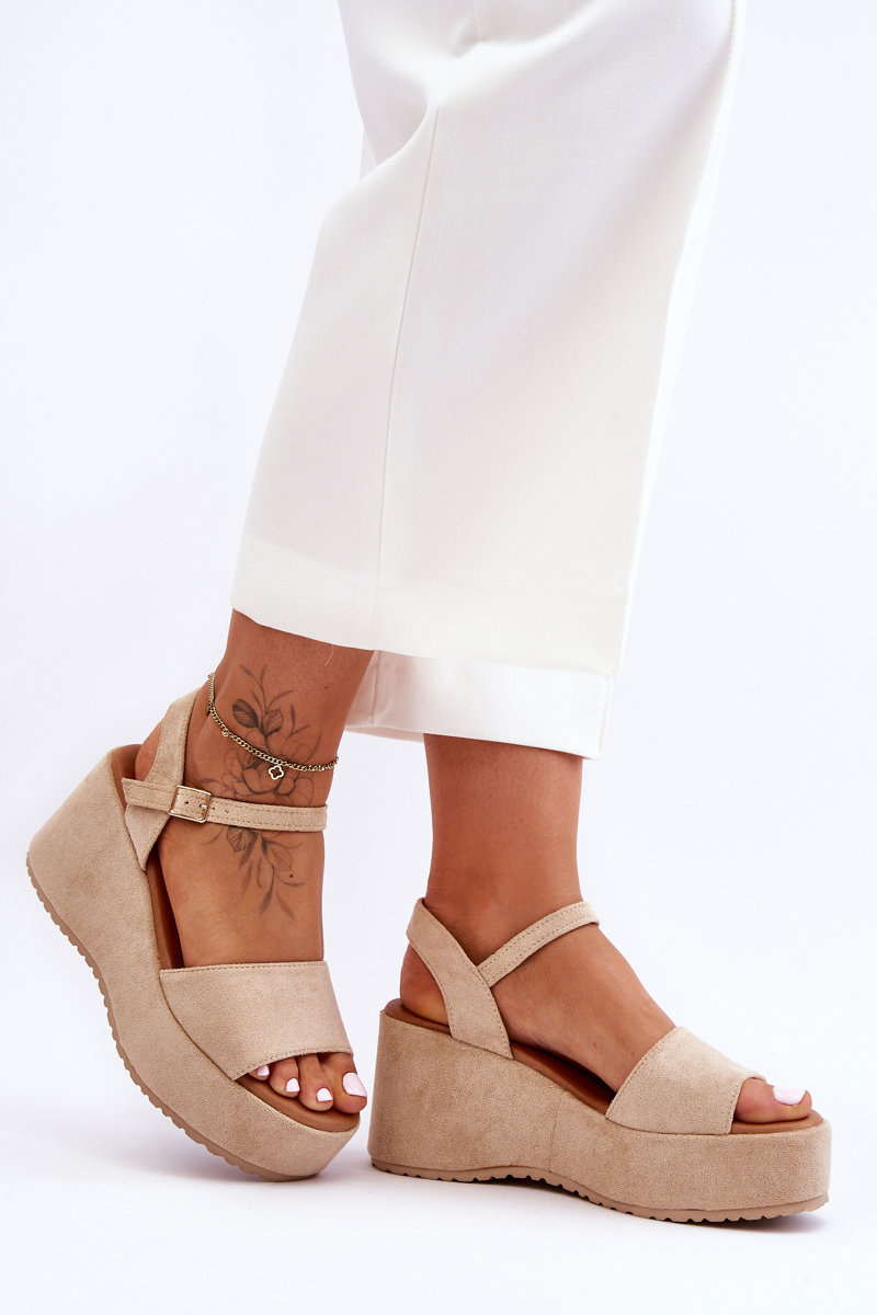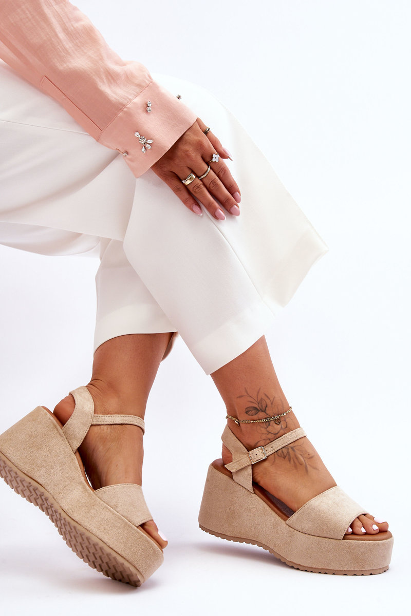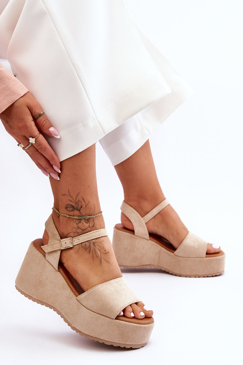 Жіночі замшеві босоніжки на танкетці Бежеві Лідія