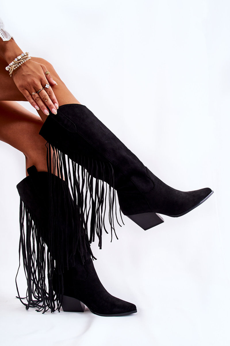 Жіночі замшеві ковбойські чоботи з бахромою, чорні Simplo