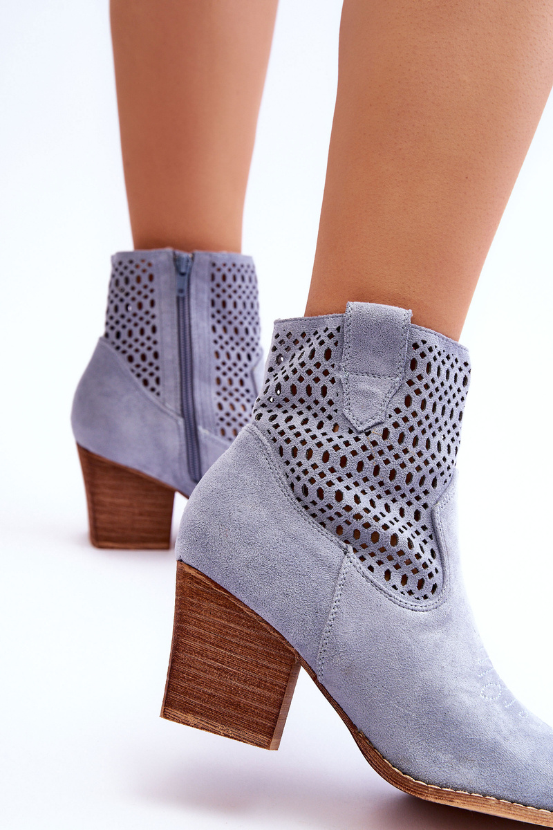 Унікальні черевики в ковбойському стилі з верхом до щиколотки. Черевики виготовлені з екологічної замші з ажурним візерунком і строчкою спереду. Матеріальна устілка і стійкий каблук у вигляді стійки забезпечать Ваш комфорт. Чоботи неодмінно доповнять багато ваших нарядів. Обов’язково перегляньте всю нашу колекцію ковбойських чобіт! Обираючи розмір, орієнтуйтеся на таблицю розмірів.