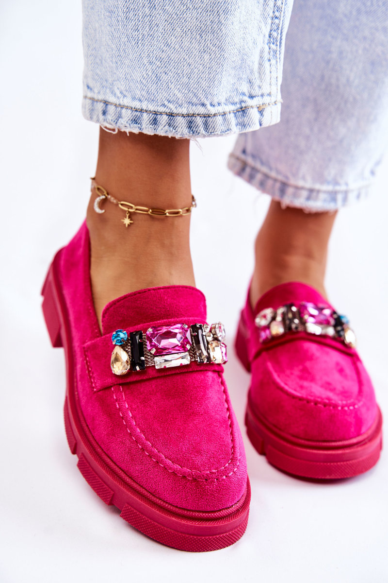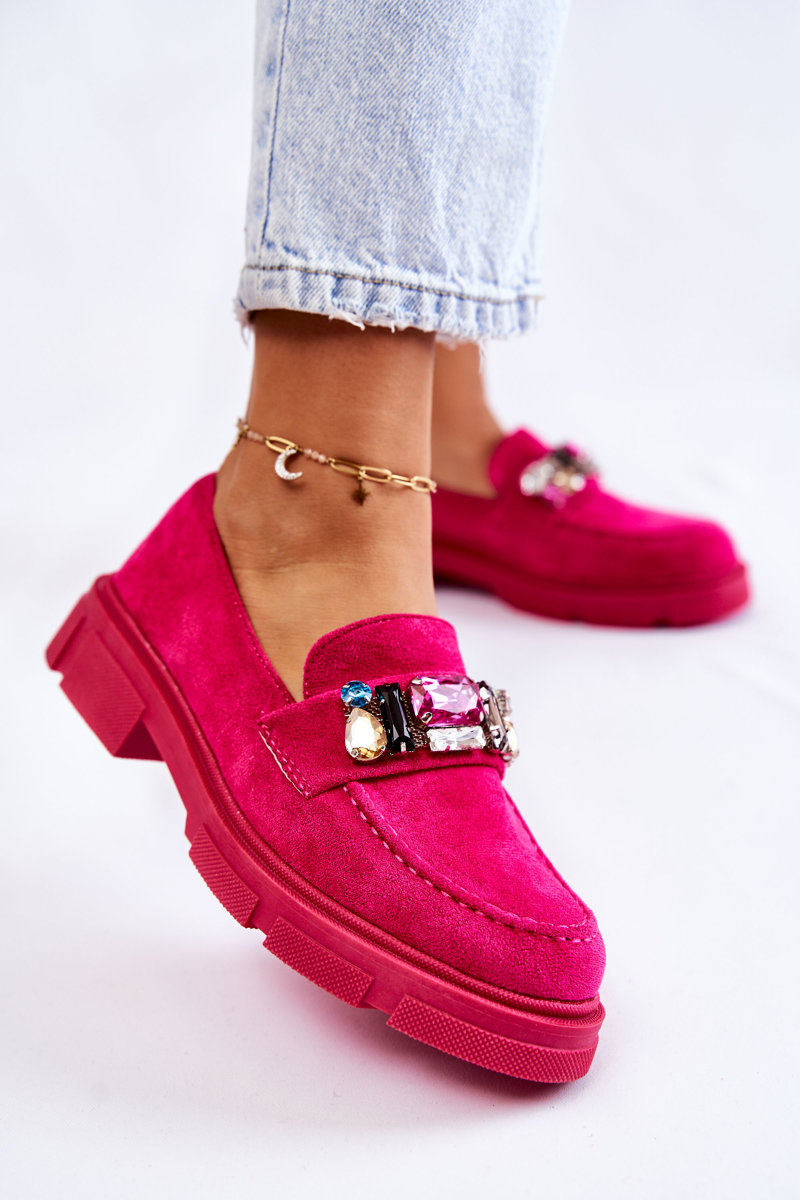 Жіночі замшеві лофери з декором Фуксія Karlott
