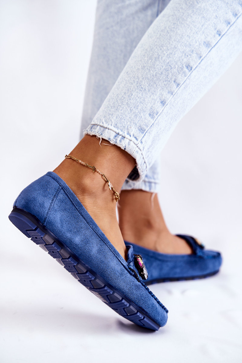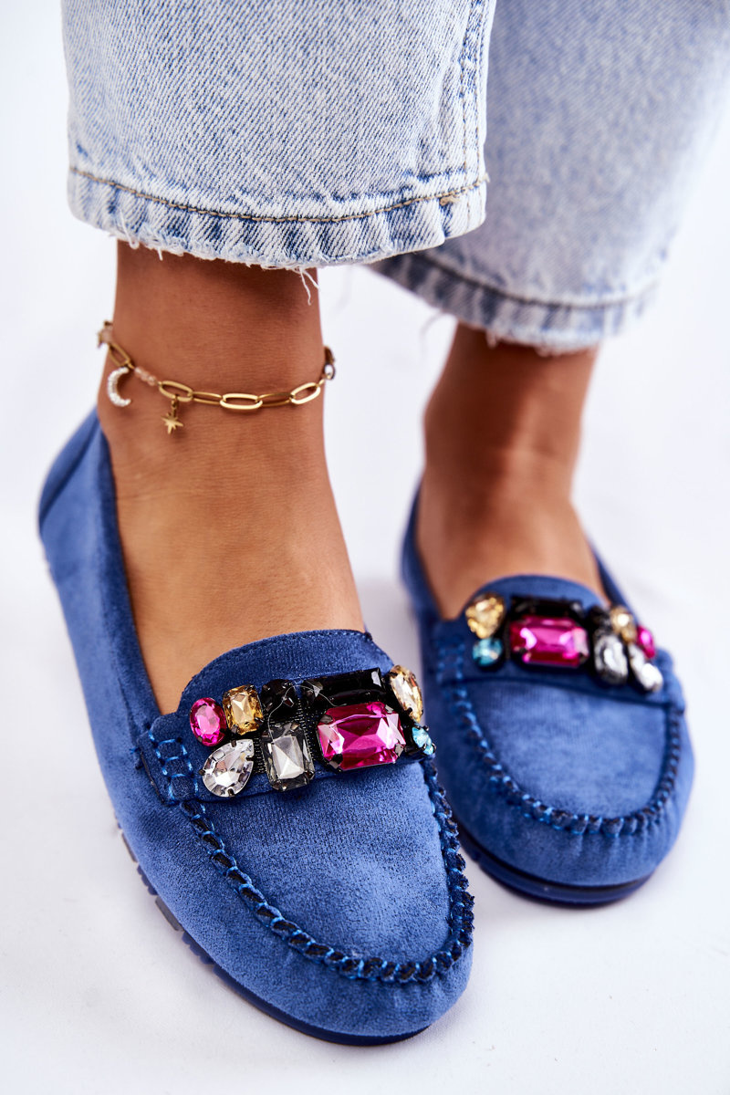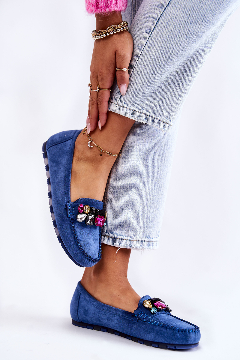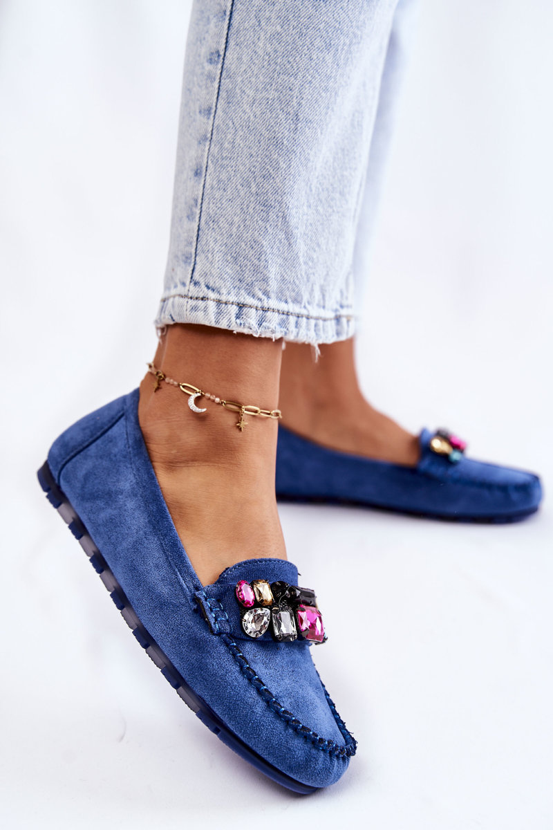 Жіночі замшеві лофери з декором синього кольору Janetta