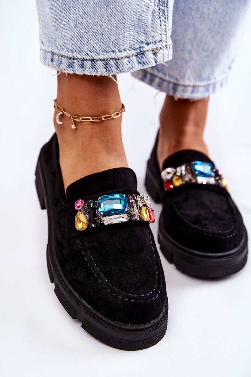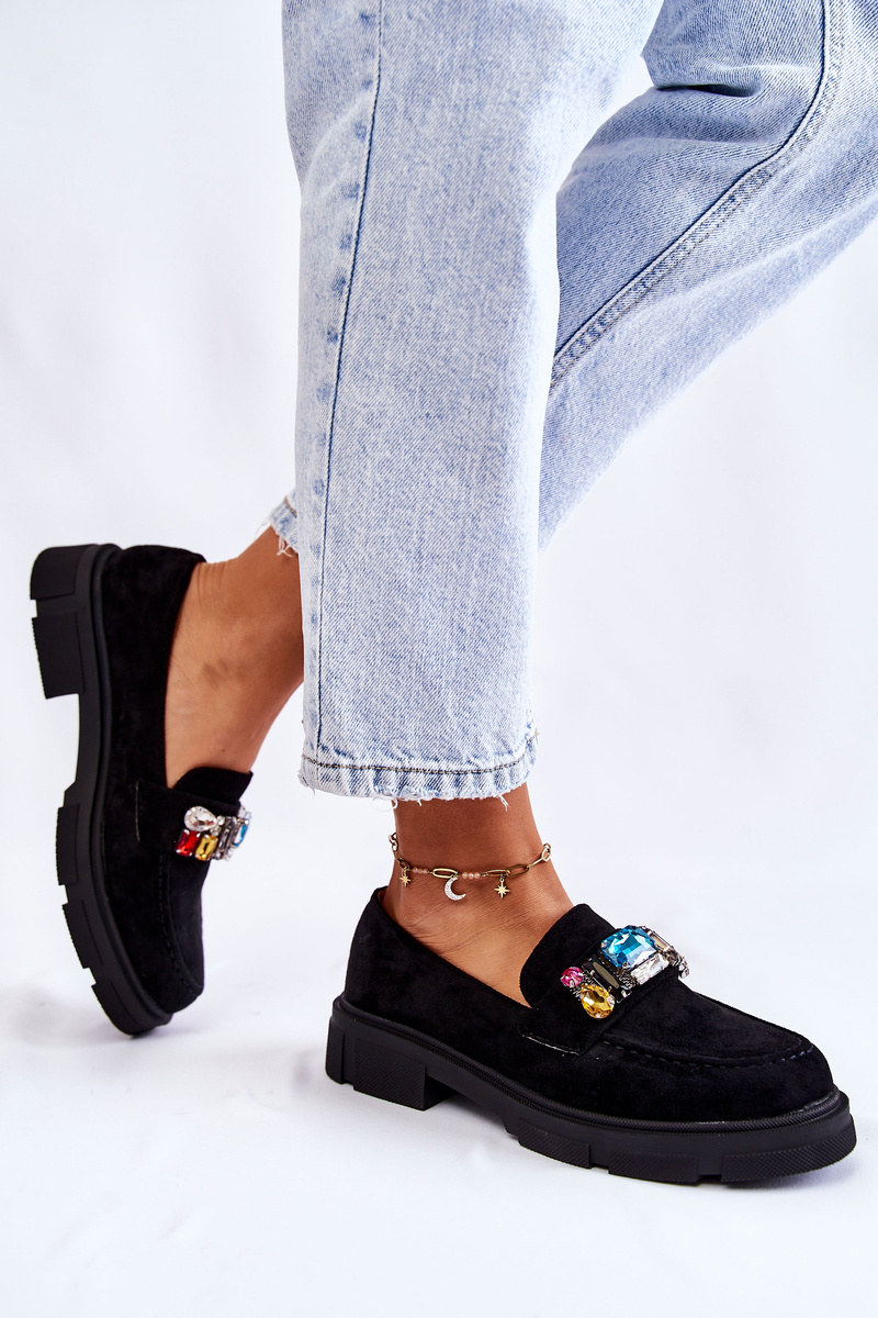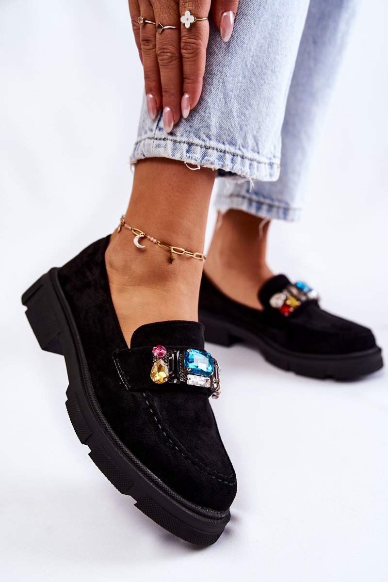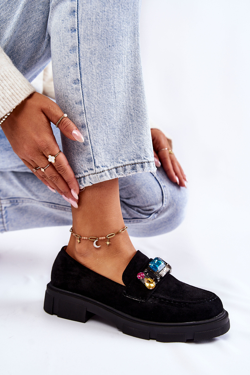 Туфлі Classic виготовлені з екологічної замші, приємної на дотик. На передній частині є характерний орнамент у вигляді кристалів і страз. Взуття має платформу і плоский каблук. Підошва з канавками відмінно ізолює від землі і додатково не ковзає. Устілка з натуральної шкіри забезпечить комфорт під час використання. Ідеальна модель для багатьох стилів! При виборі розміру скористайтеся таблицею розмірів.