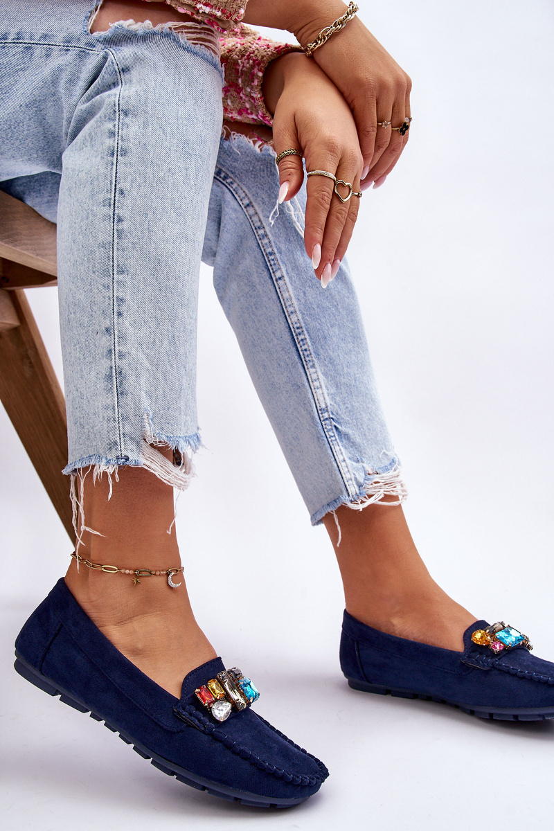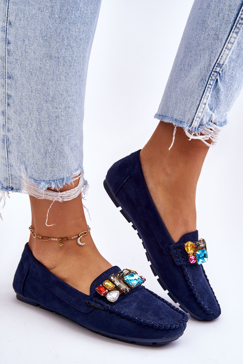 Towar wprowadzony przed 13.12.2024Tak Жіночі замшеві лофери з кристалами темно-сині Lucille