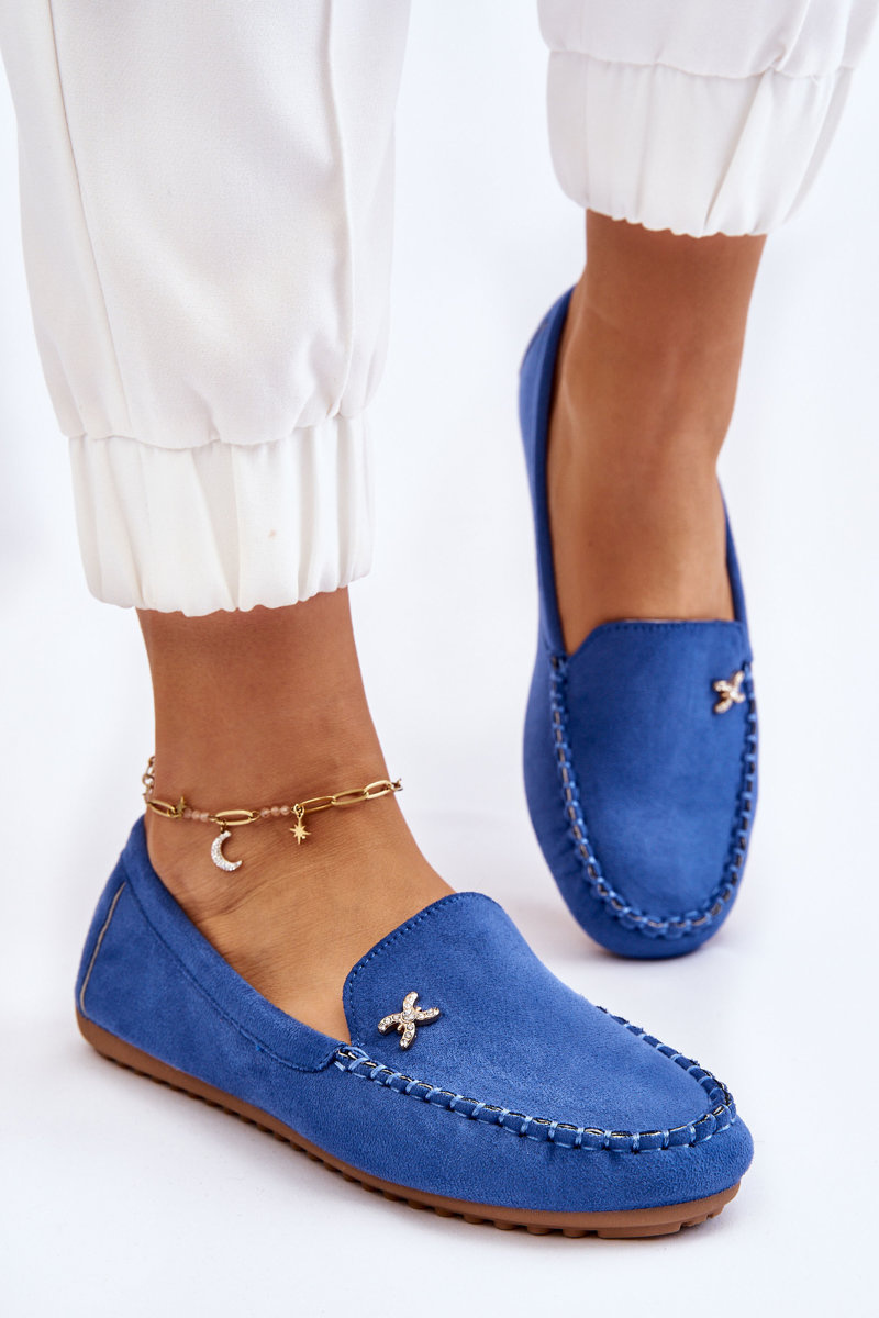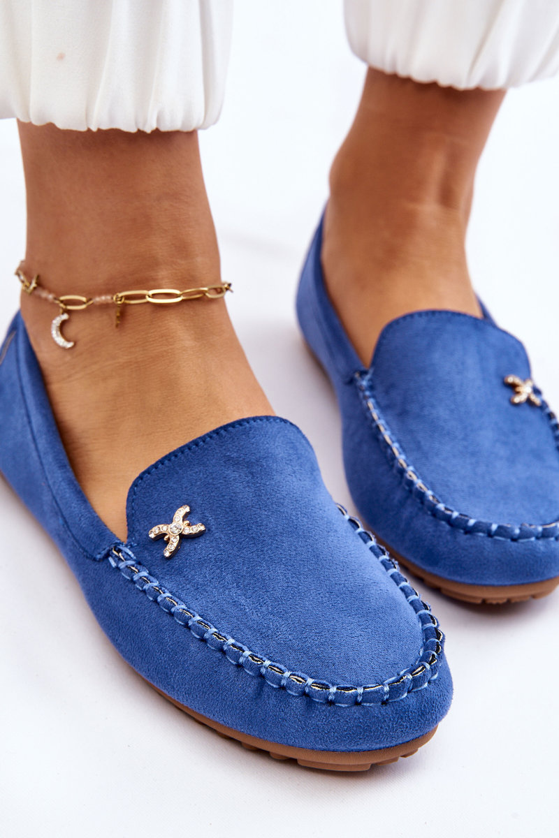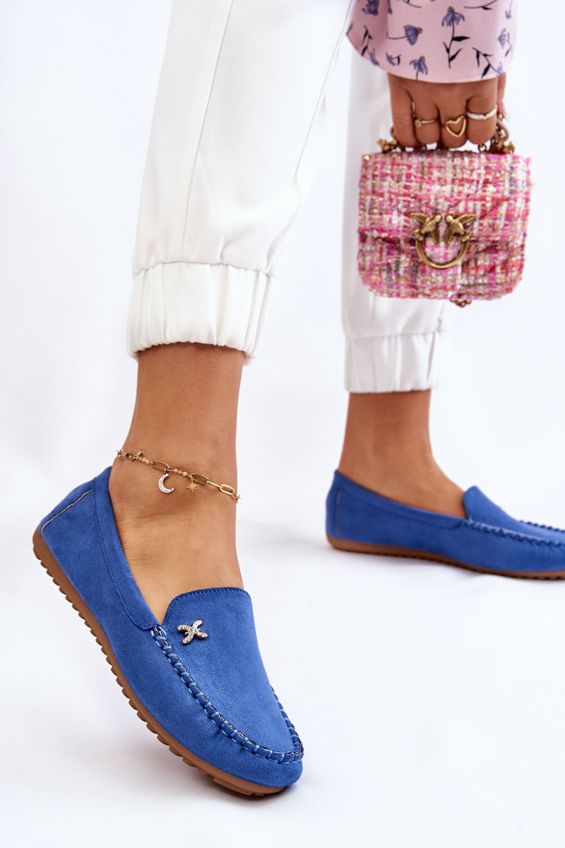 Жіночі замшеві лофери з прикрасами Синя Лія