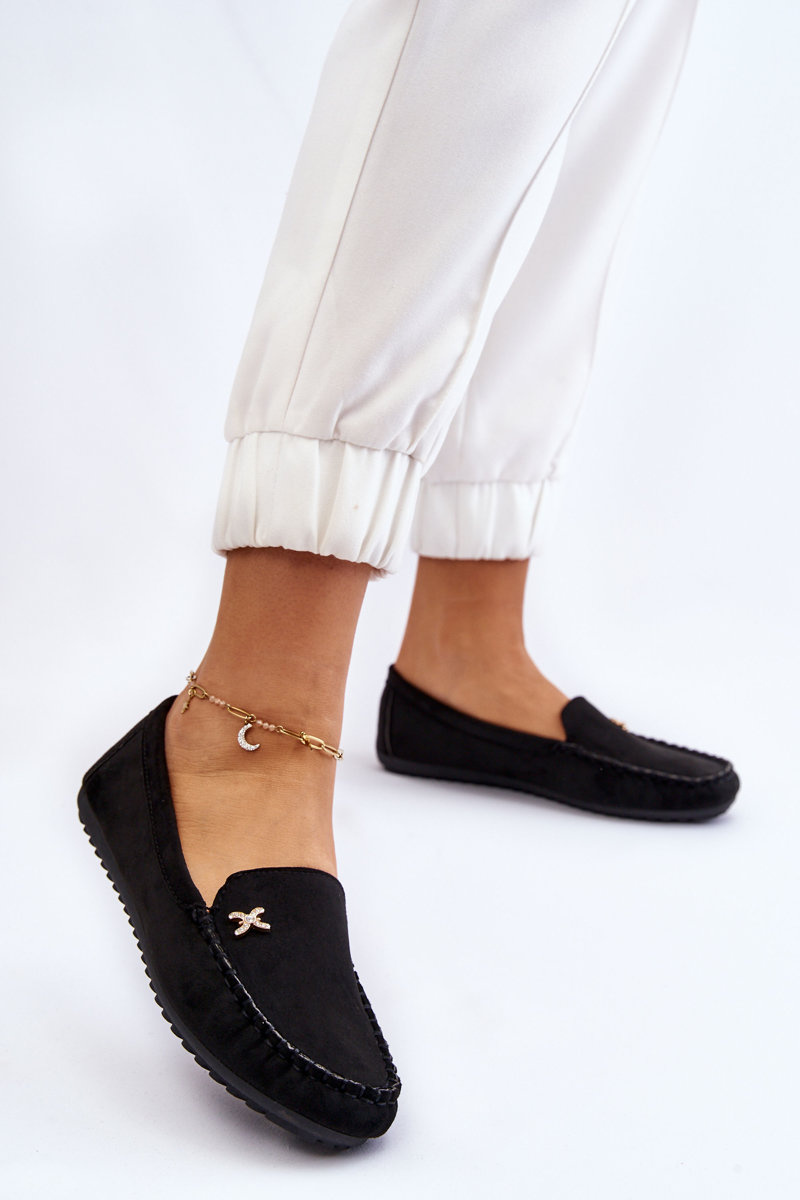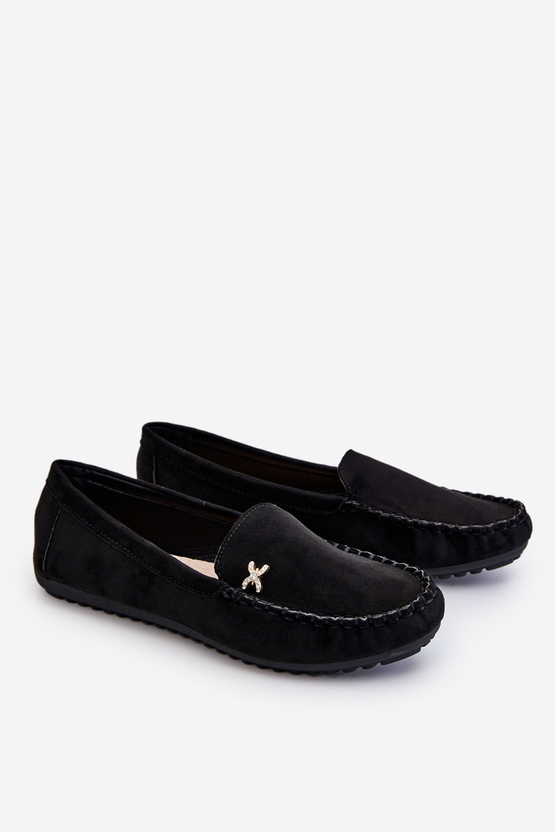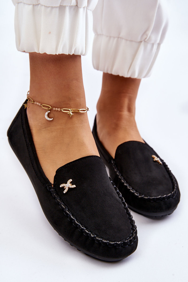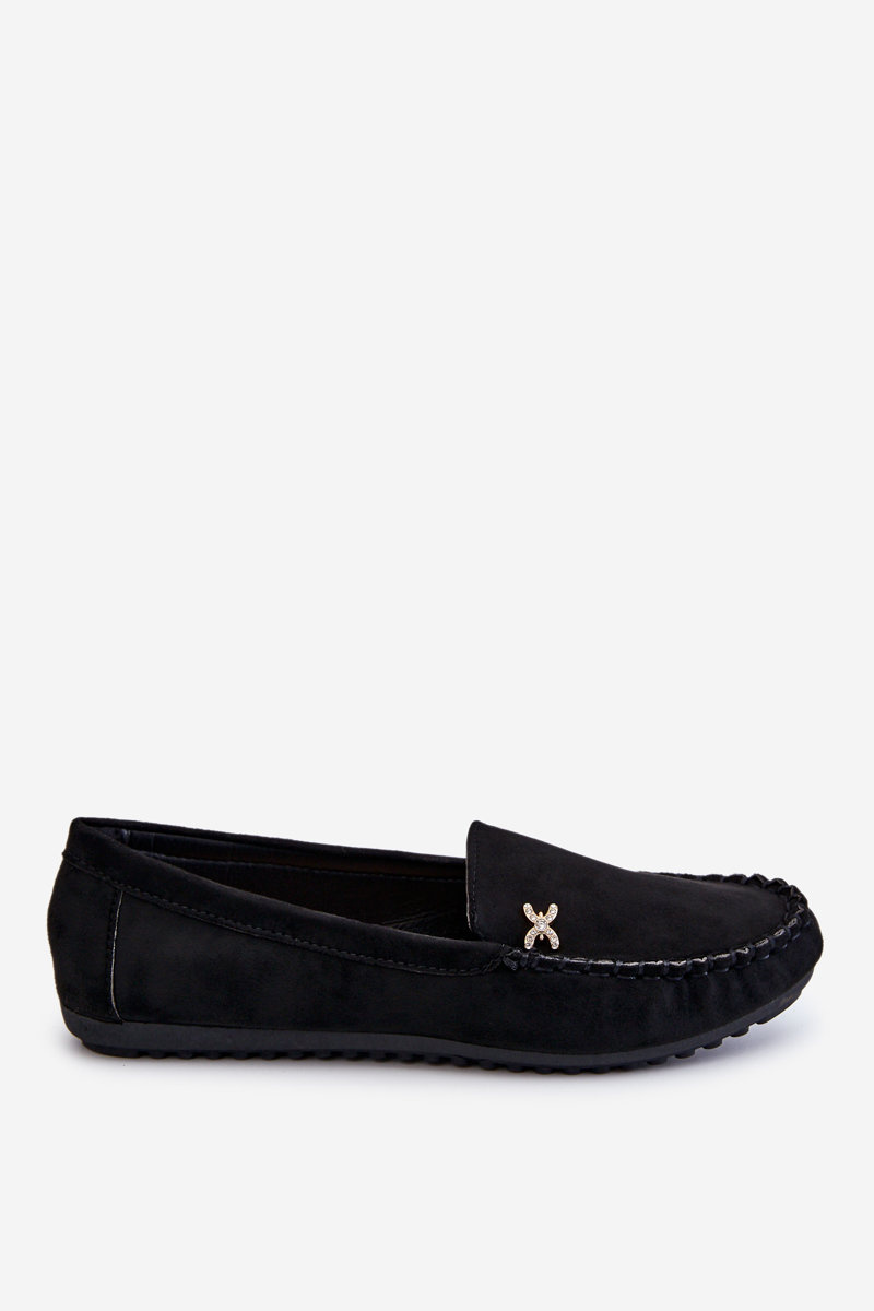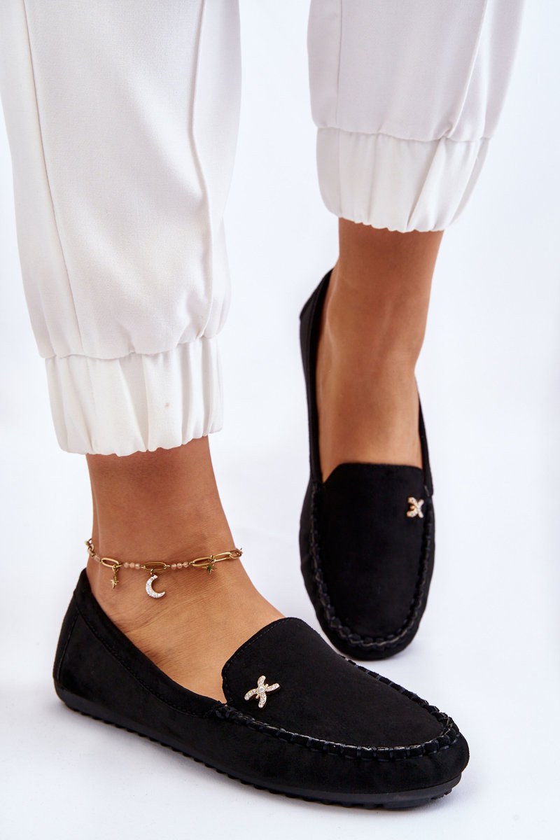 Жіночі замшеві лофери з прикрасами Чорні Leah