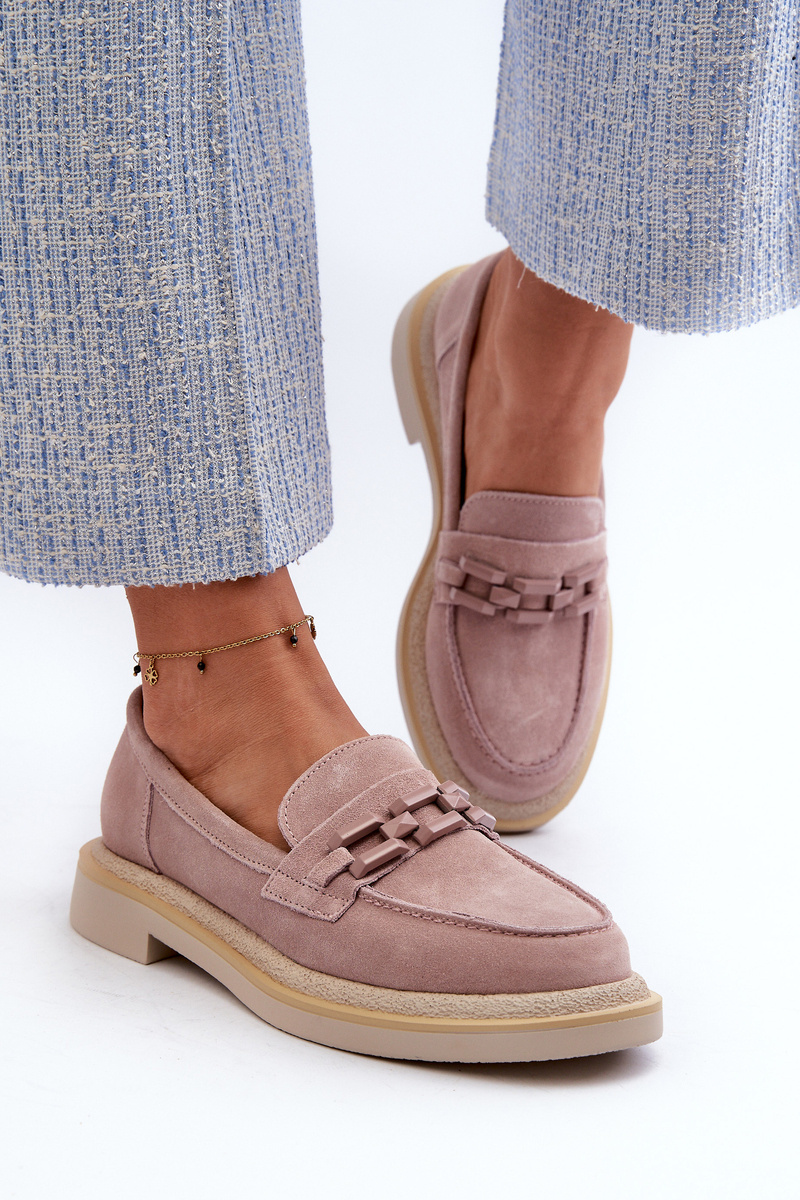 Жіночі мокасини з натуральної замші. Плоский каблук гарантує стабільність і комфорт під час ходьби. Додатковий декоративний елемент спереду додає їм оригінальності, роблячи їх не тільки практичними, але й модними. Ці мокасини стануть ідеальним доповненням до різноманітних стилів, як повсякденних, так і більш елегантних. Обираючи розмір, орієнтуйтеся на таблицю розмірів.