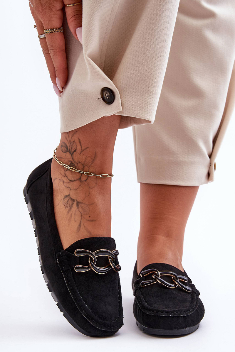 Жіночі замшеві лофери на плоскій підошві Black Appia