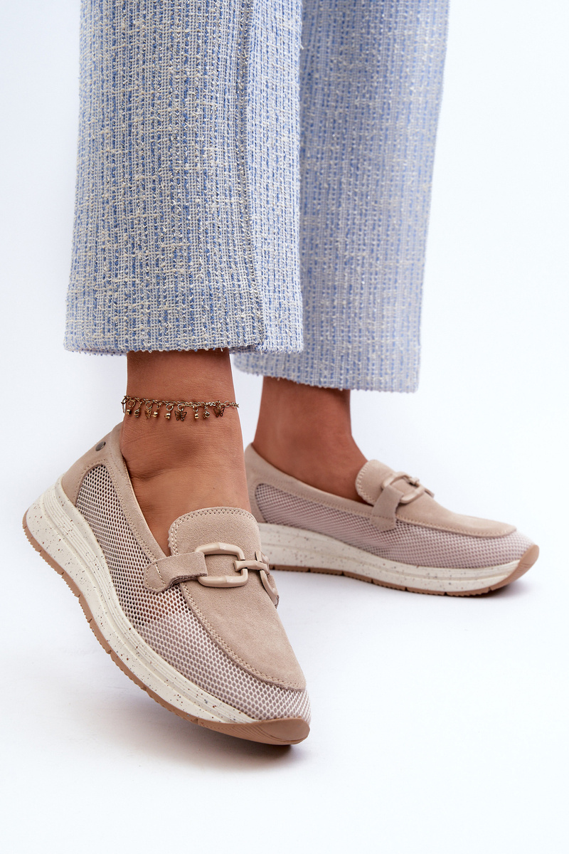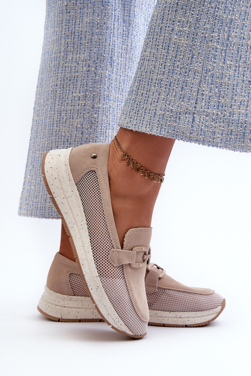 Мокасини з дихаючого матеріалу з ніжним перфорованим малюнком, що забезпечує комфорт і циркуляцію повітря всередині взуття. Декоративна пряжка зверху додає елегантності, а платформа разом з тонкою танкеткою забезпечує комфорт під час ходьби. Ці мокасини - чудовий вибір для жінок, які цінують поєднання функціональності та стильного зовнішнього вигляду. Обираючи розмір, орієнтуйтеся на таблицю розмірів.