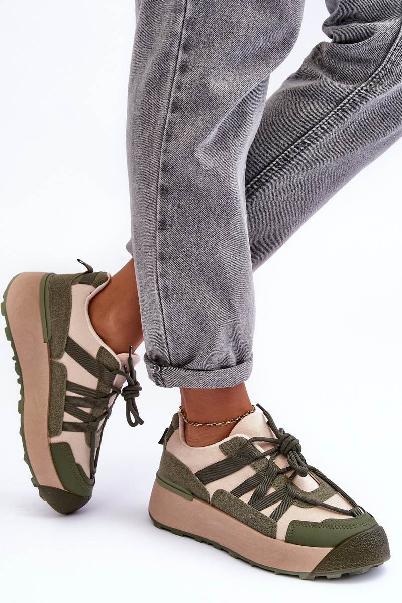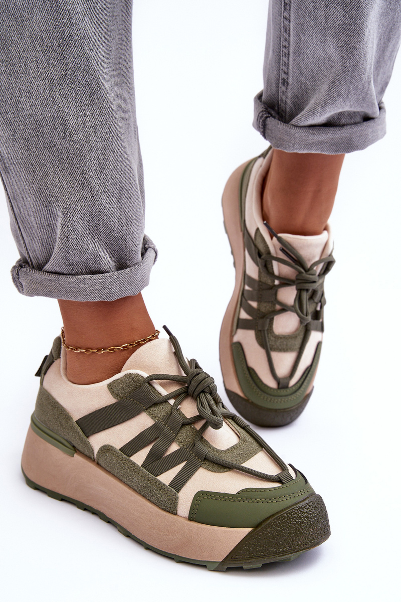 Жіночі замшеві спортивні туфлі на платформі бежево-зелені Rohan