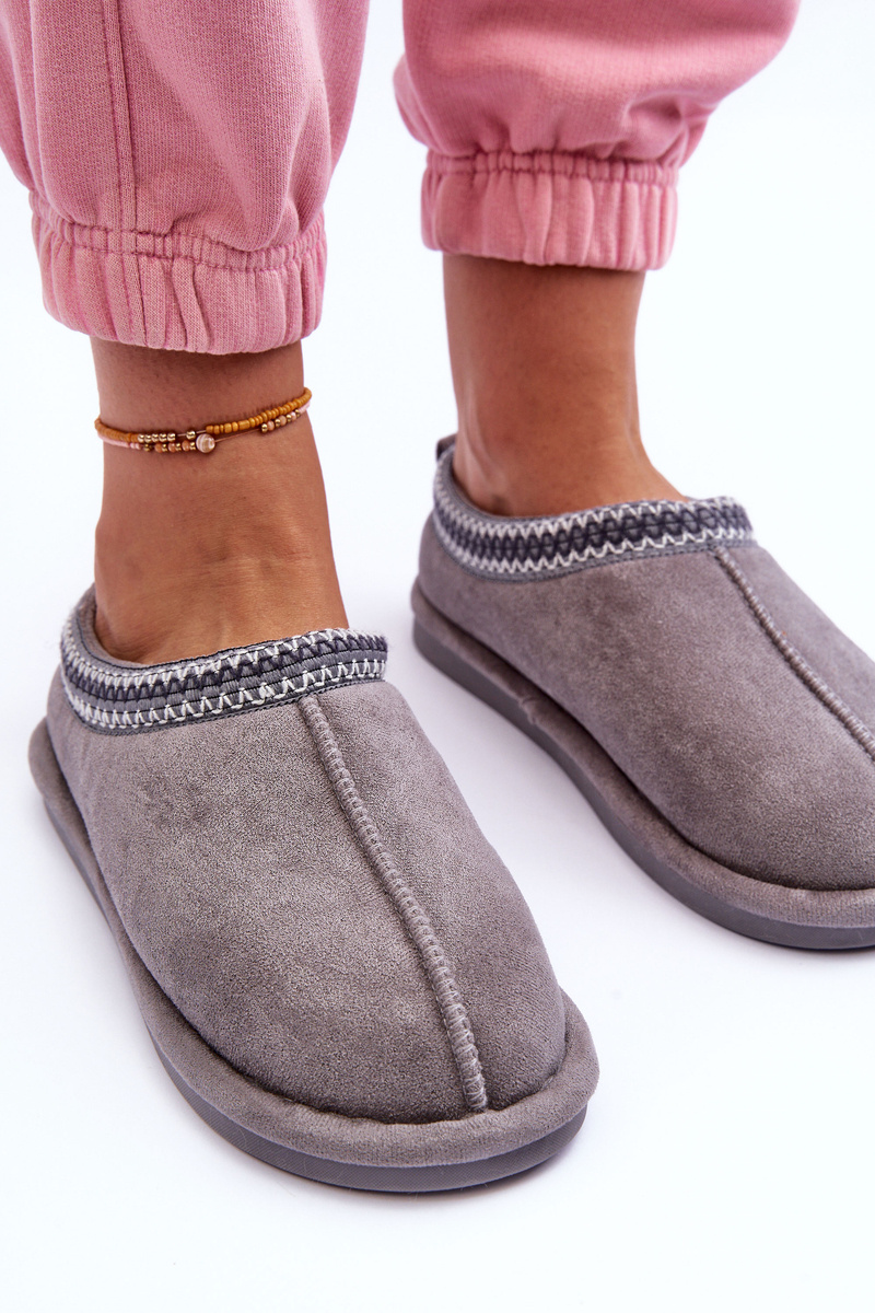 Жіночі замшеві тапочки зі штучним хутром сірі Polinna