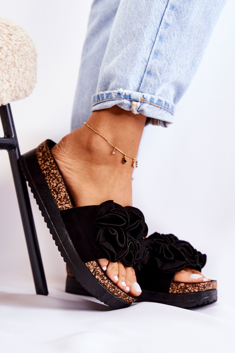 Класичні жіночі тапочки на масивній платформі з пробки та пластику. Спереду орнамент з еко замші. Профільована устілка зручна у використанні навіть протягом дня. Модель сліпони. Не чекайте більше і купуйте сьогодні! Ви обов'язково повинні їх мати! При виборі розміру скористайтеся таблицею розмірів.