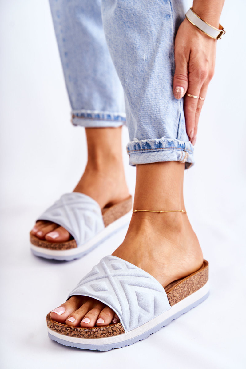 Модні жіночі тапочки з приємної на дотик еко замші. Модель кріпиться на масивну коркову платформу з пластиковою підошвою. Устілка профільована, а також виготовлена з еко замші, що забезпечить комфорт під час використання. Модель з відкритим носком. Чудовий дизайн для спекотних днів, який обов'язково повинен бути у вашому гардеробі! При виборі розміру скористайтеся таблицею розмірів.
