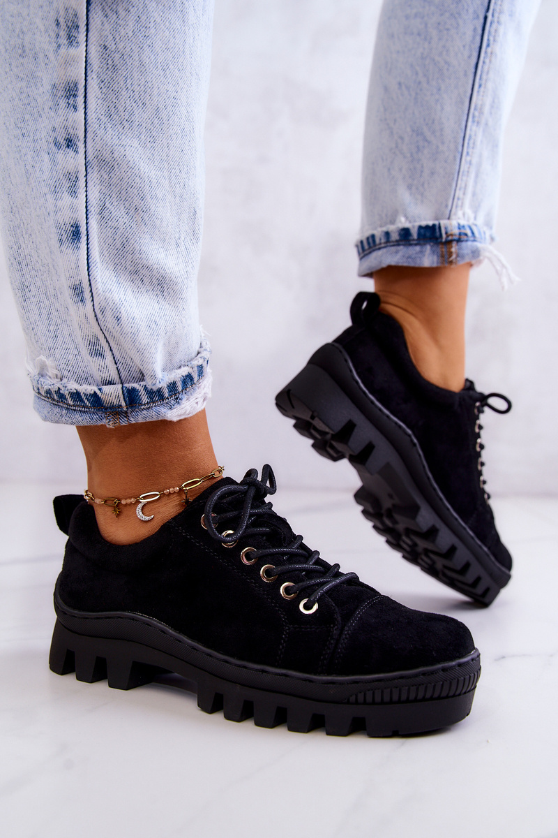Жіночі замшеві туфлі на зав'язках чорний майсон