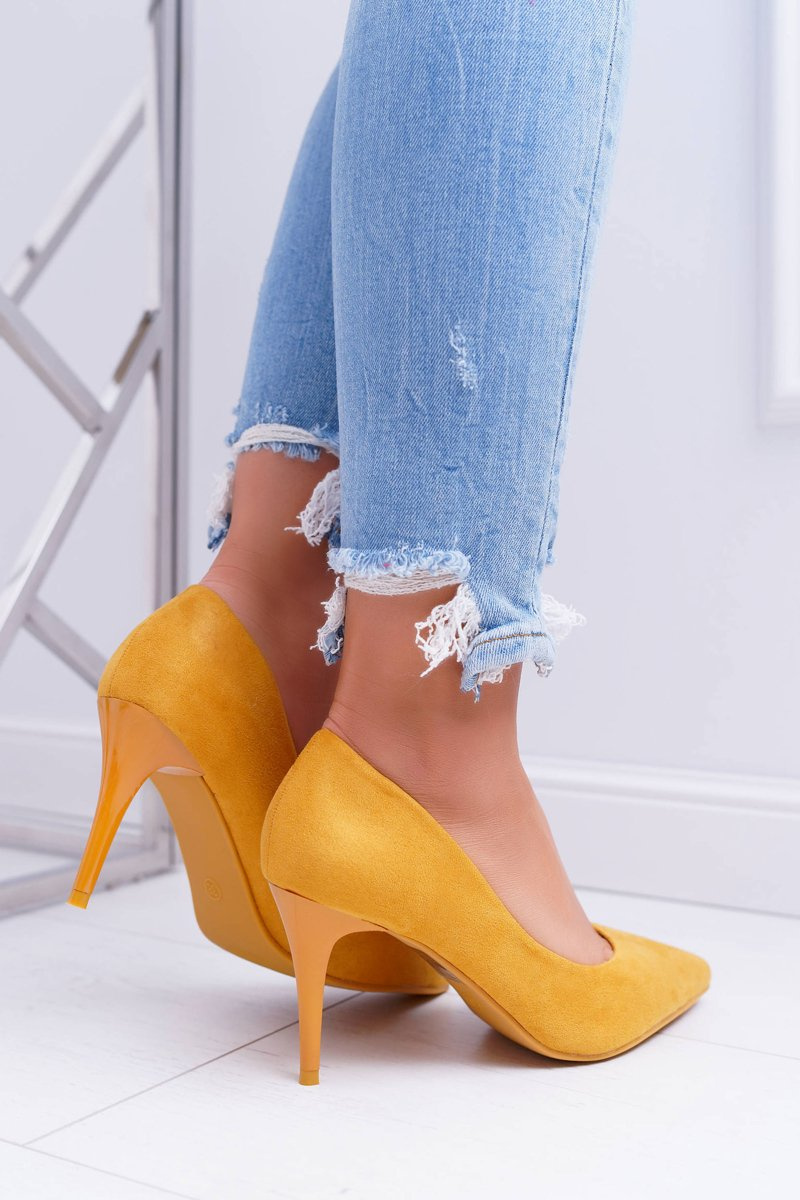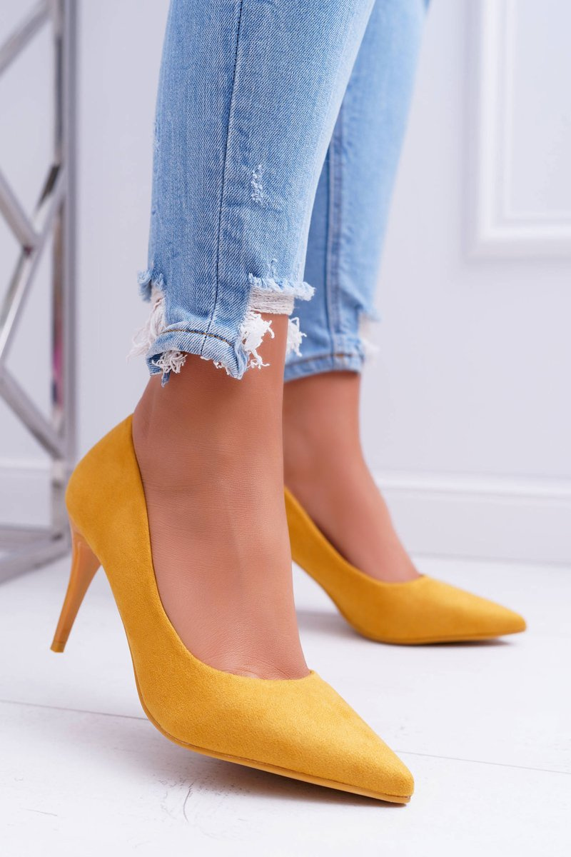 Жіночі замшеві туфлі на шпильці жовтого кремового кольору