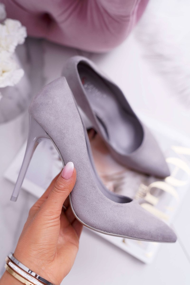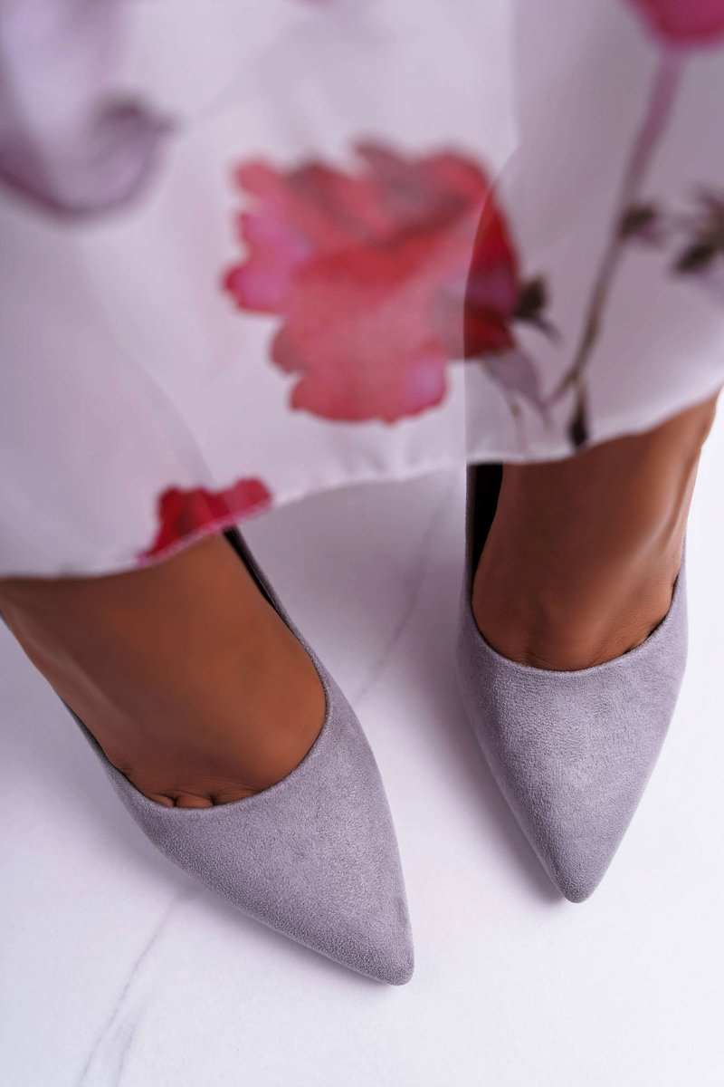 Жіночі замшеві туфлі на шпильці сірі Yanna