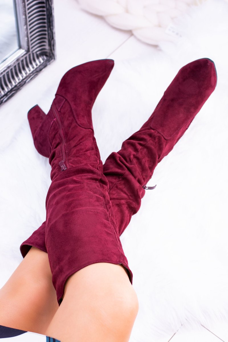 Жіночі замшеві чоботи на гострому каблуці темно-бордового кольору Nightcall