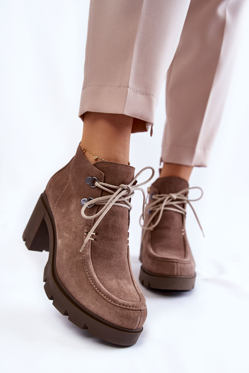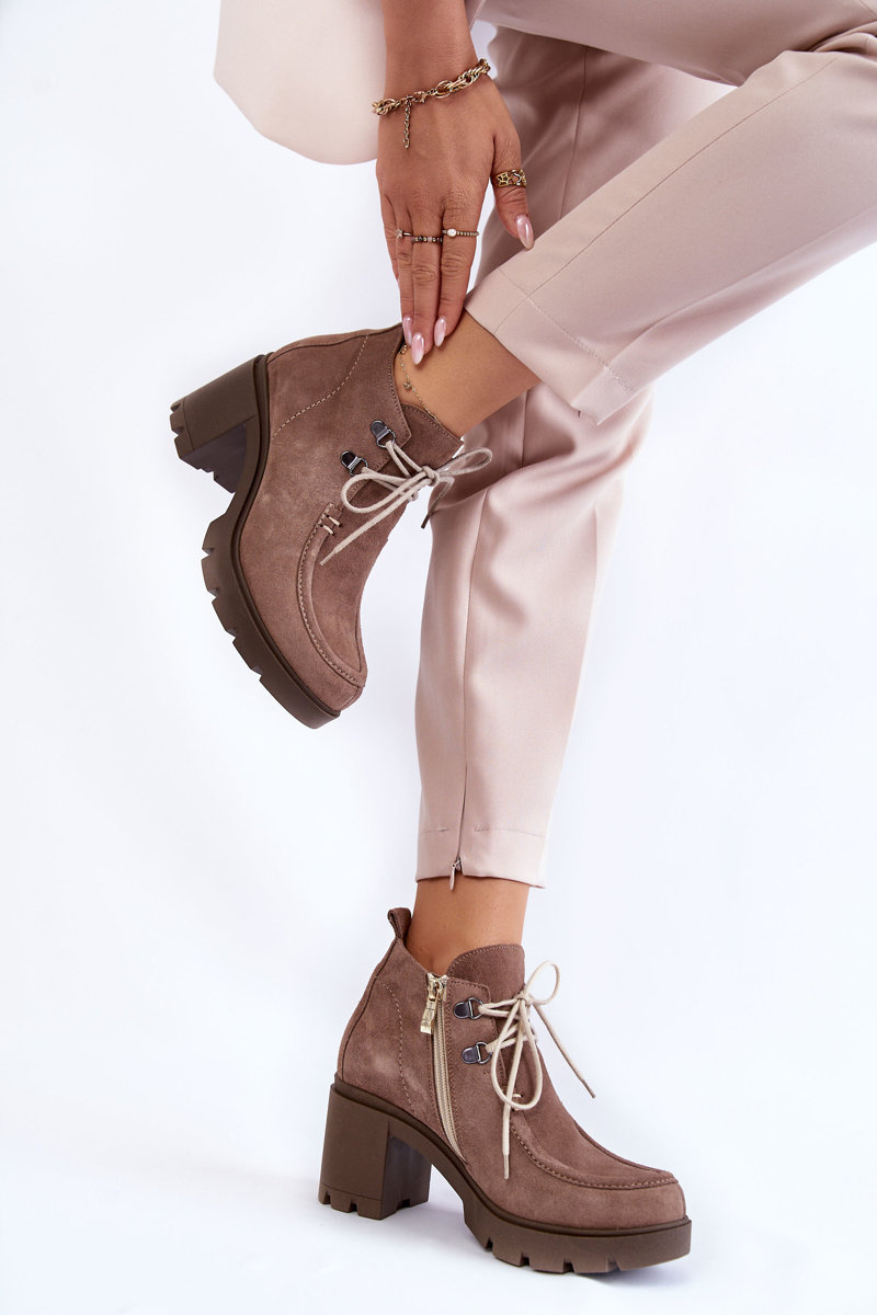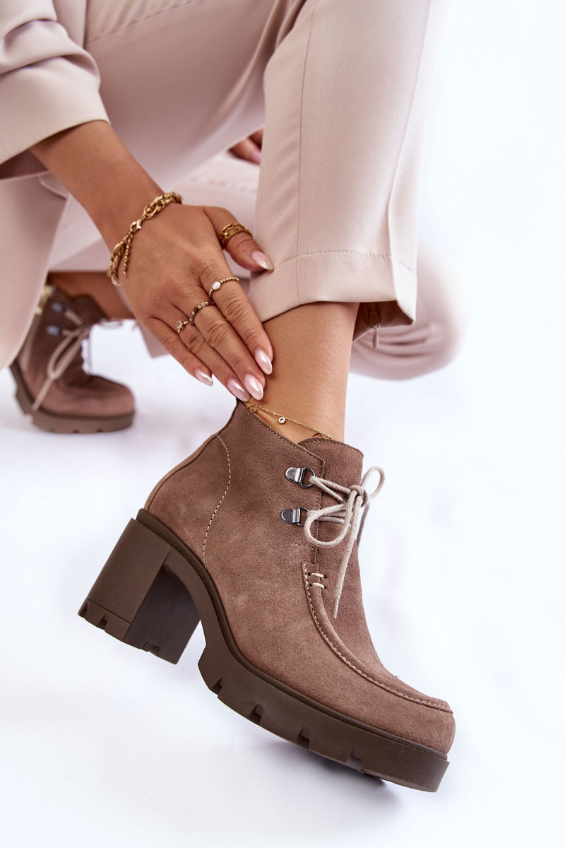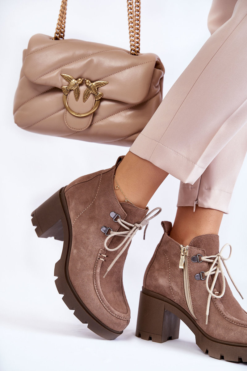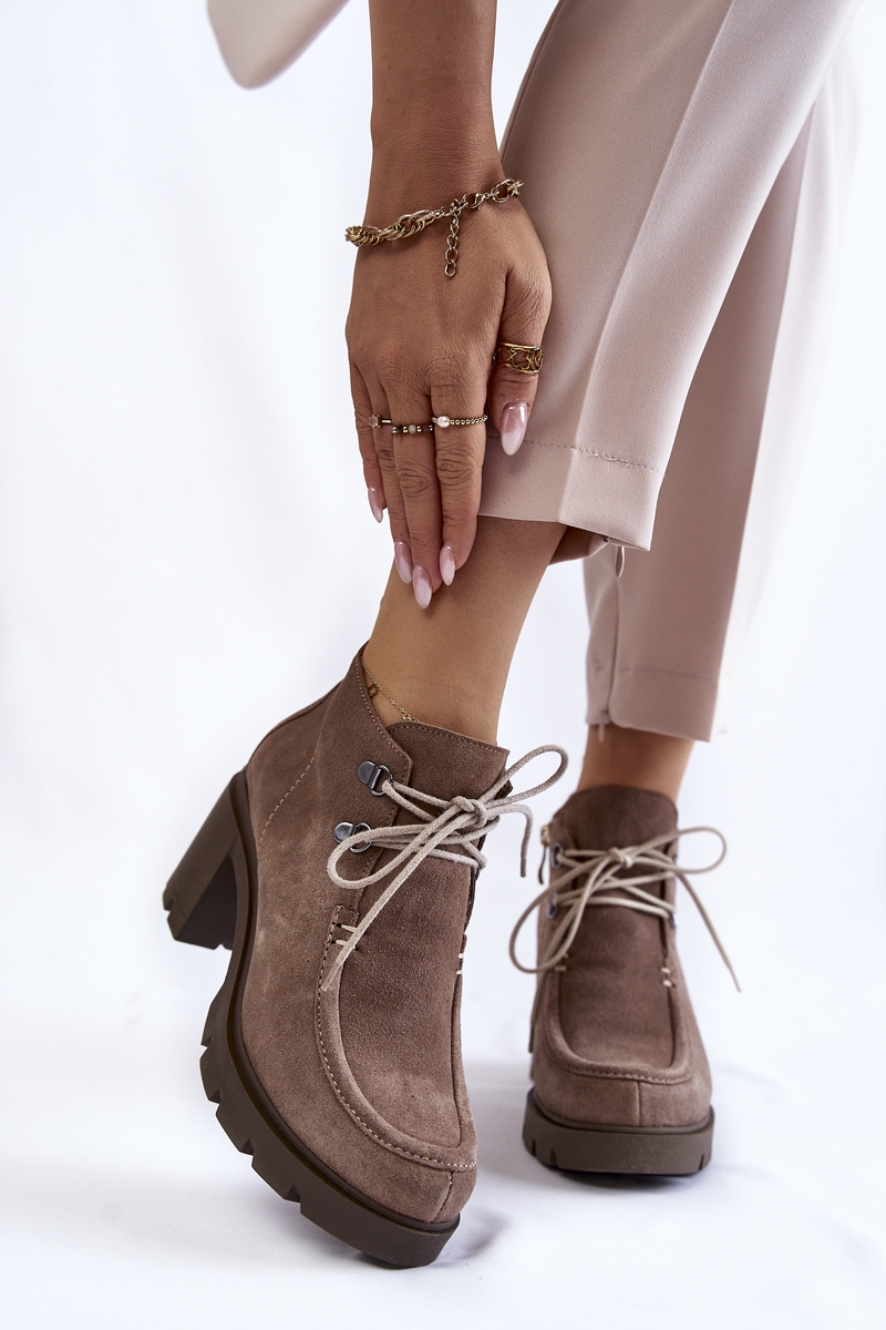 Ботильйони з верхом до щиколотки. Товстий, стійкий каблук і круглий носок. Зав'язується тонкими круглими шнурками під колір взуття. Виготовлений з натуральної шкіри. Ціле створює оригінальний характер. Чоботи утеплені взуттєвою ковдрою з посиленим каблуком. Вони мають блискавку збоку верху, що полегшує надягання. Ідеально підходить для багатьох стилів! При виборі розміру скористайтеся таблицею розмірів.