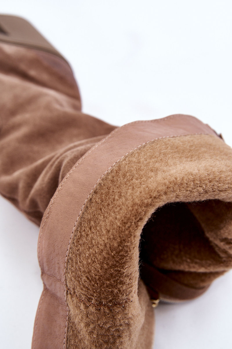 Жіночі замшеві чоботи на масивному каблуці світло-коричневі Valeris