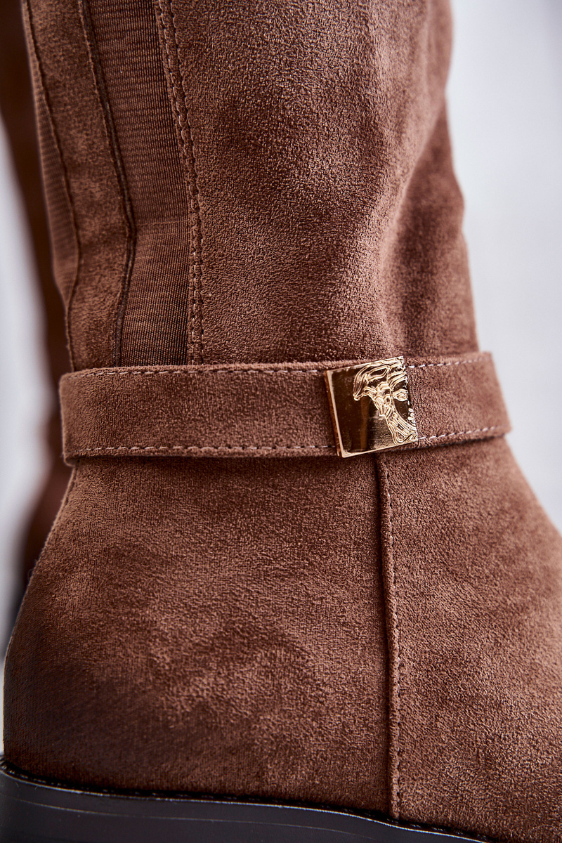 Жіночі замшеві чоботи на плоскій підошві коричневого кольору Henrike