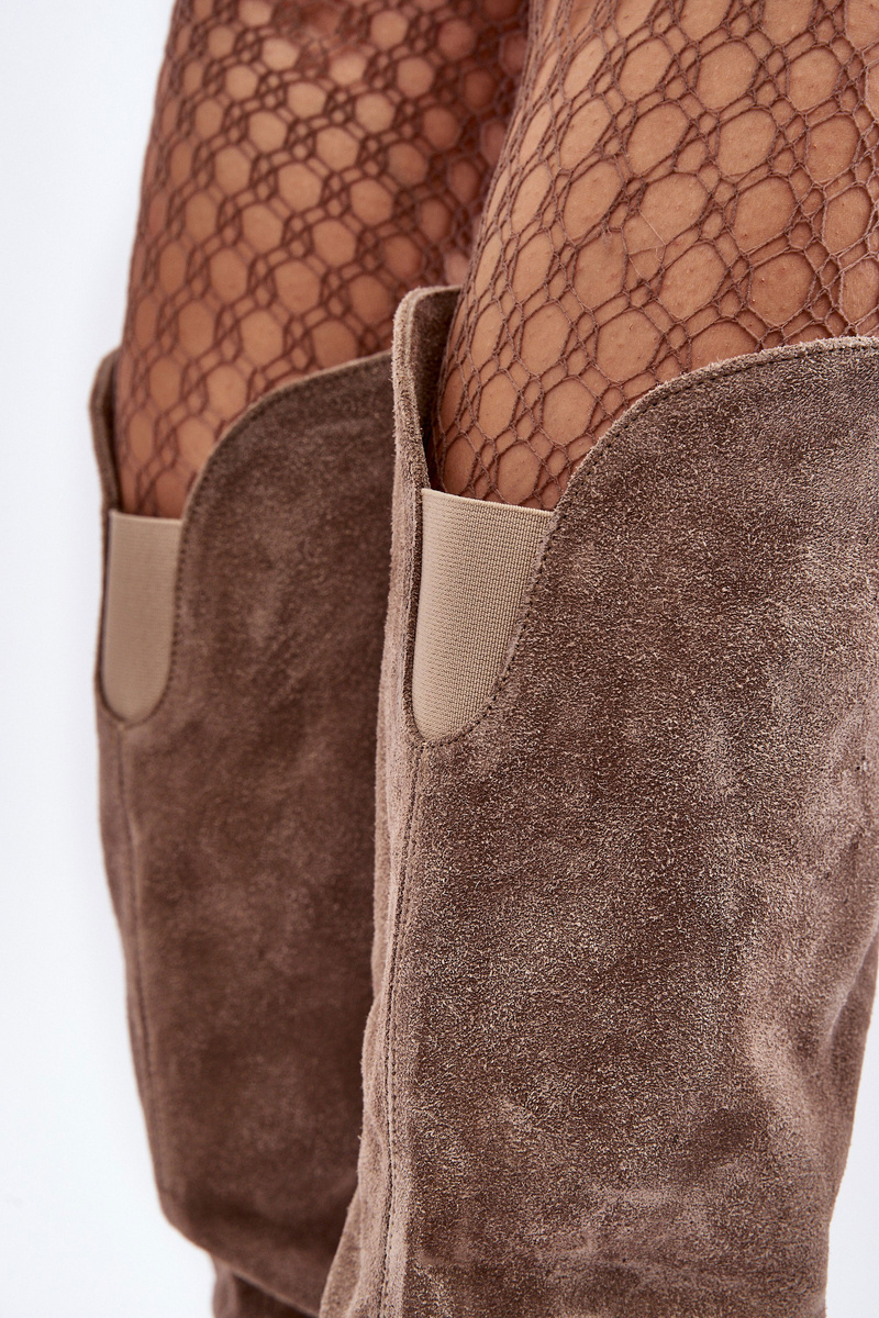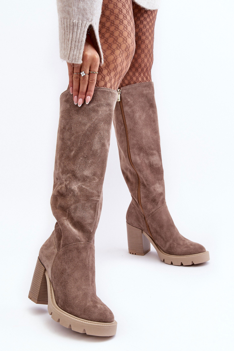 Жіночі замшеві чоботи на підборах темно-бежеві Lewski 3371