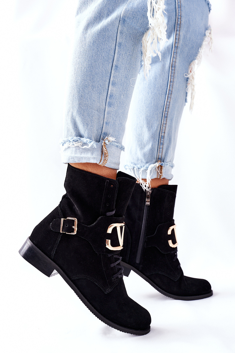 Ці черевики виготовлені з натуральної замші. Велика пряжка і золотисті літери чудово підкреслюють їх неповторний стиль. Черевики мають ніжний плоский каблук. При виборі розміру скористайтеся таблицею розмірів.