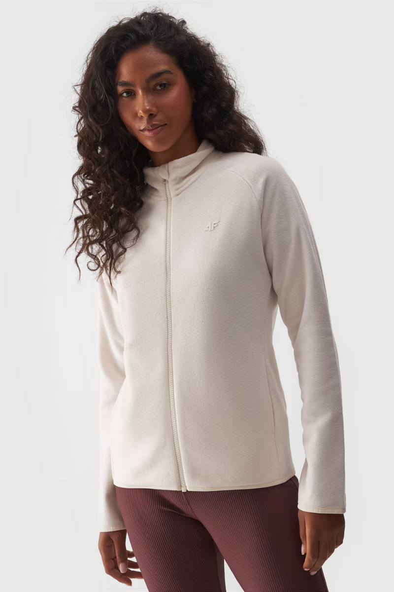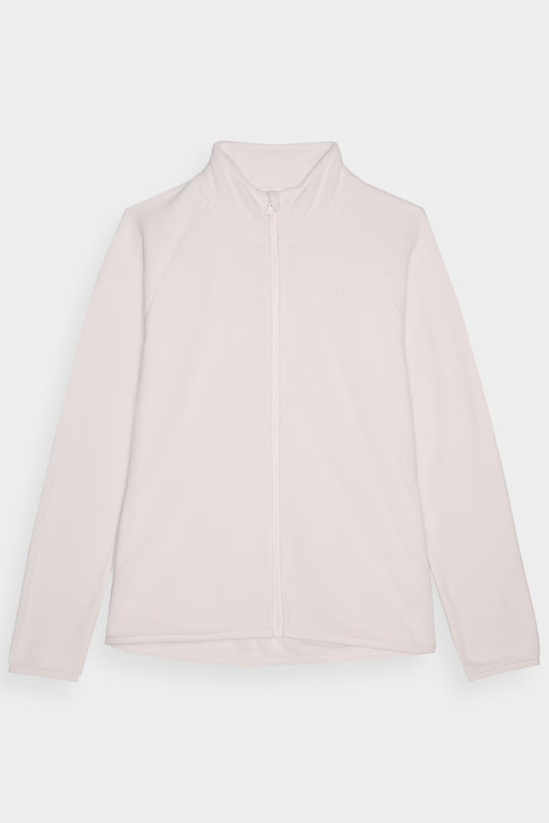 Жіночий флісовий пуловер виготовлений із тонкого мікрофлісу, який має хорошу теплоізоляцію та надзвичайно легку вагу. Цей матеріал пропускає повітря і швидко сохне. Технологія 4F Warm підтримує тепловий комфорт. Має звичайний крій, який зручно адаптується до силуету, і стандартну довжину до лінії стегон. Жіночий флісовий пуловер має комір, що захищає шию. Класично оброблені манжети. З боків є 2 відкритих кишені. Застібається на односторонню основну блискавку. Рукава реглан не сковують рухів. Додатковий матеріал: 60% бавовна, 40% поліестер Основний матеріал: 100% поліестер
