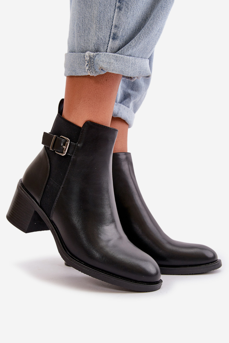 Жіночі зимові утеплені чоботи на підборах і пряжці Чорні Nevillira