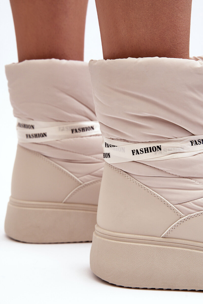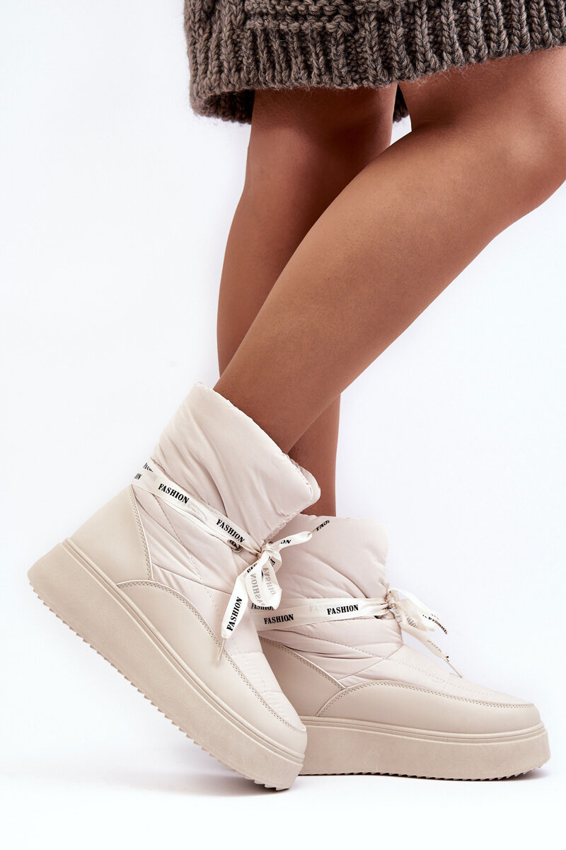 Жіночі зимові черевики з декоративною шнурівкою світло-бежевого кольору Siracna