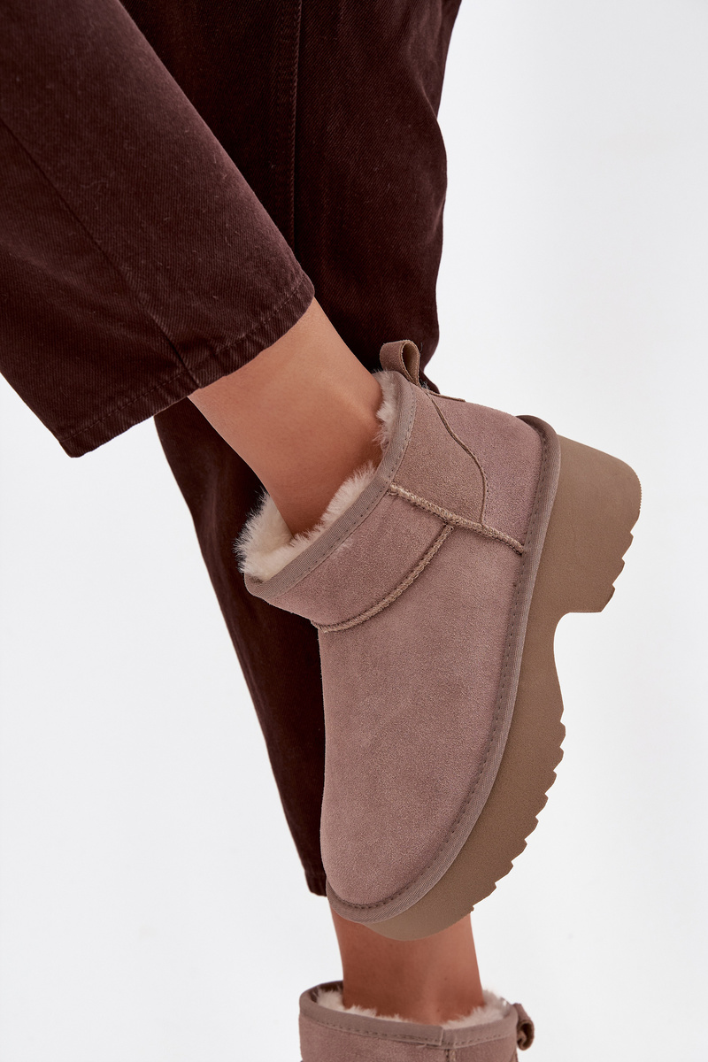 Жіночі зимові черевики з натуральної замші — стильна пропозиція для зимових днів. Встановлені на платформі, вони забезпечують стабільність і комфорт під час ходьби, одночасно ефективно ізолюючи від холоду. Внутрішня частина взуття обшита хутром, що гарантує тепло і комфорт у морозні дні. Модний фасон робить їх ідеальним доповненням до актуальних трендів. Ідеальний вибір для жінок, які цінують стиль і зручність у зимових образах. Будь ласка, зверніться до розмірної сітки при виборі розміру.