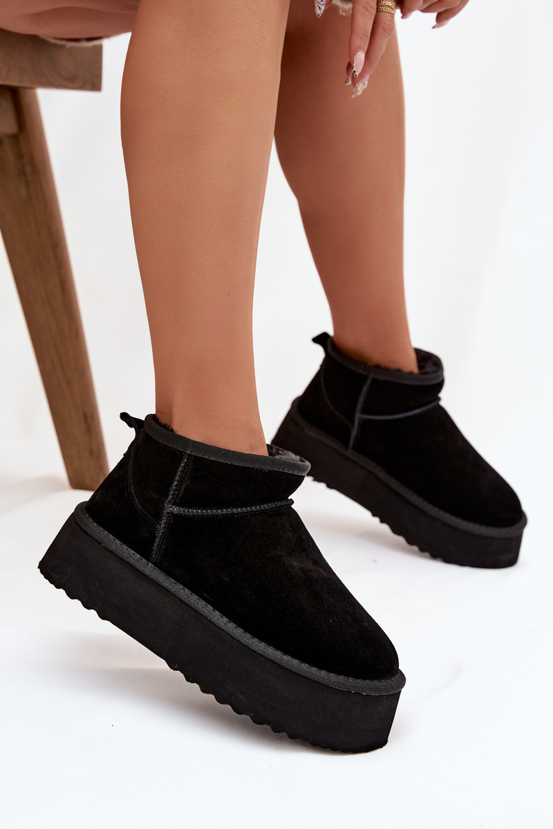 Жіночі зимові чоботи з натуральної замші – міцний та стильний вибір для зимових днів. Встановлені на зручній платформі, вони забезпечують хорошу ізоляцію від холодної поверхні та комфорт під час ходьби. Внутрішня частина утеплена товстим, м'яким хутром, що забезпечує виняткове тепло, тому ці взуття чудово підходять навіть за низьких температур. Це практична та модна модель, ідеальна для щоденних зимових образів. При виборі розміру просимо керуватися таблицею розмірів. Будь ласка, зверніться до розмірної сітки при виборі розміру.