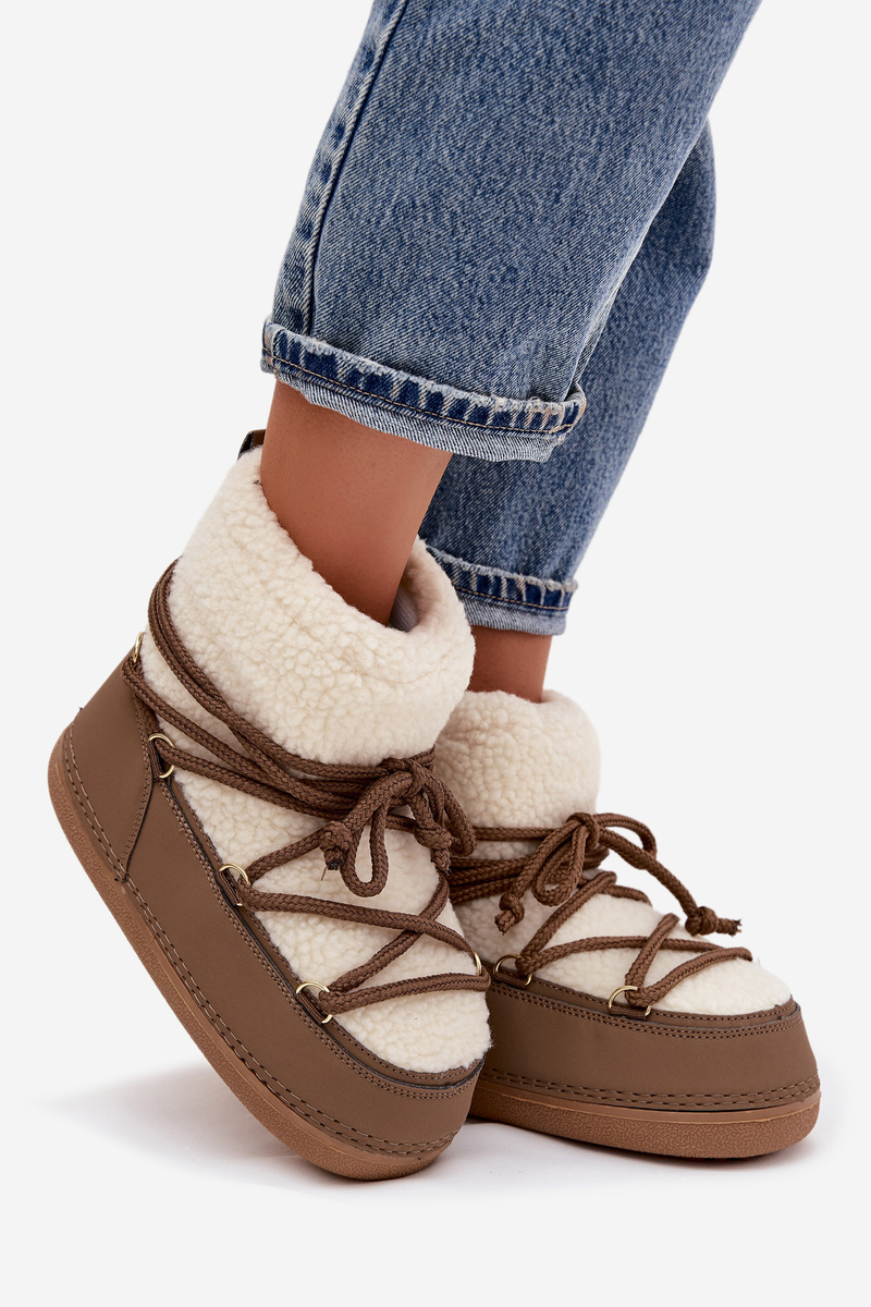 Жіночі зимові черевики з овчинкою шнурки темно бежеві Belira