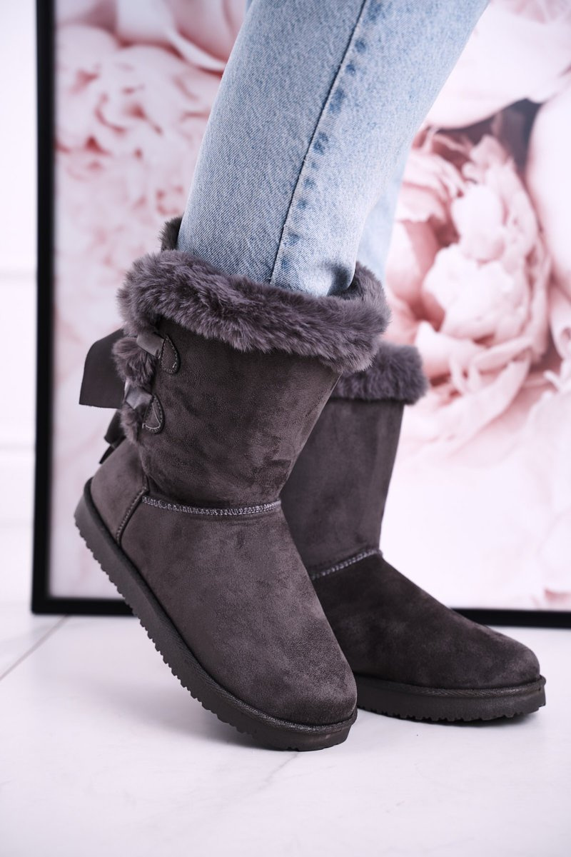 Жіночі зимові черевики з тасьмою, утеплені на хутрі, сірі Kaylee