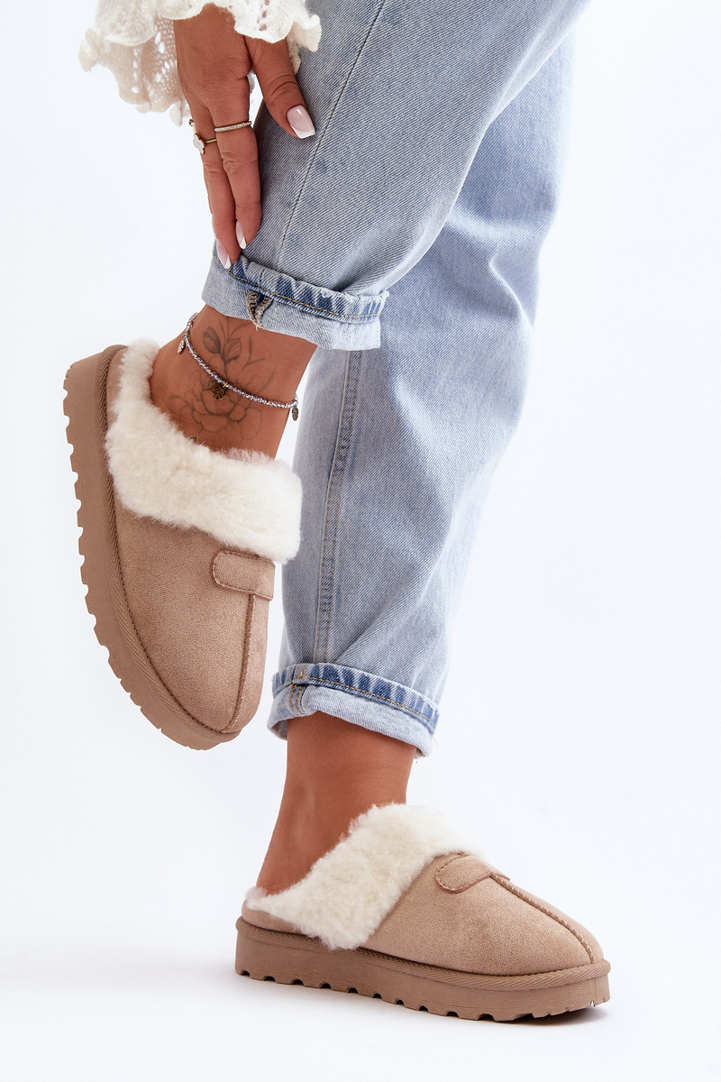 Стильні жіночі тапочки з еко замші. Встановити на платформу з гумового матеріалу. Заокруглені пальці. Верх прикрашений синтетичним хутром. Внутрішня частина обшита приємним на дотик хутром. Ідеально підходить для морозних зимових днів! Вибираючи розмір, зверніться до таблиці розмірів.