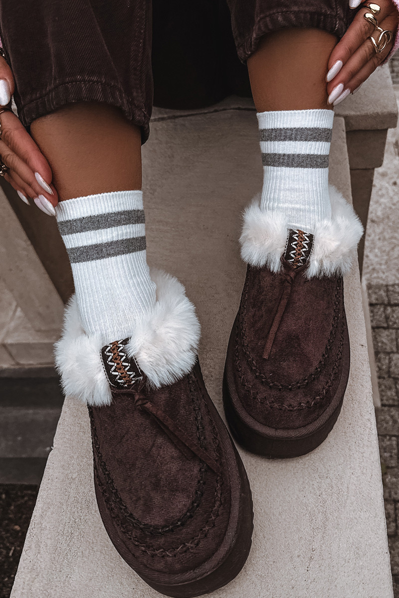 Жіночі снігові чоботи, виготовлені з екологічної замші, ідеальне поєднання стилю та комфорту для зимових днів. Розміщені на платформі, яка ніжно звужує силует і чудово ізолює від холодної поверхні, вони гарантують комфорт під час носіння. Верхня частина взуття оздоблена м'яким хутром і декоративною стрічкою, що надає всьому модного зимового вигляду. Внутрішня частина взуття також підкладена хутром, що забезпечує тепло і приємне відчуття обгортання навіть у морозні дні. Це стильні снігові чоботи, які відмінно підходять для щоденних зимових образів. Будь ласка, зверніться до розмірної сітки при виборі розміру.