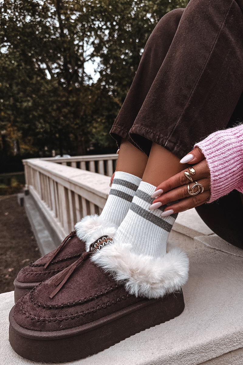 Жіночі зимові черевики з хутром на платформі шоколадні Rosmira