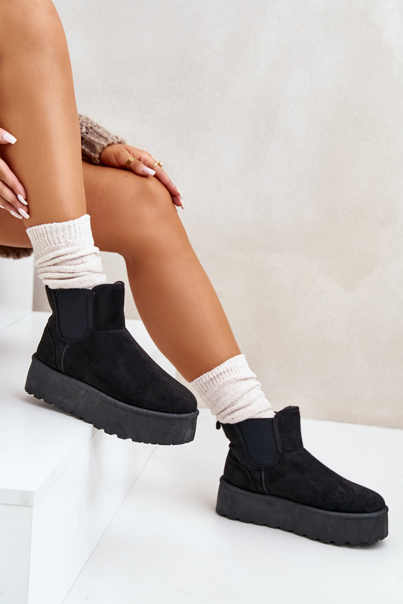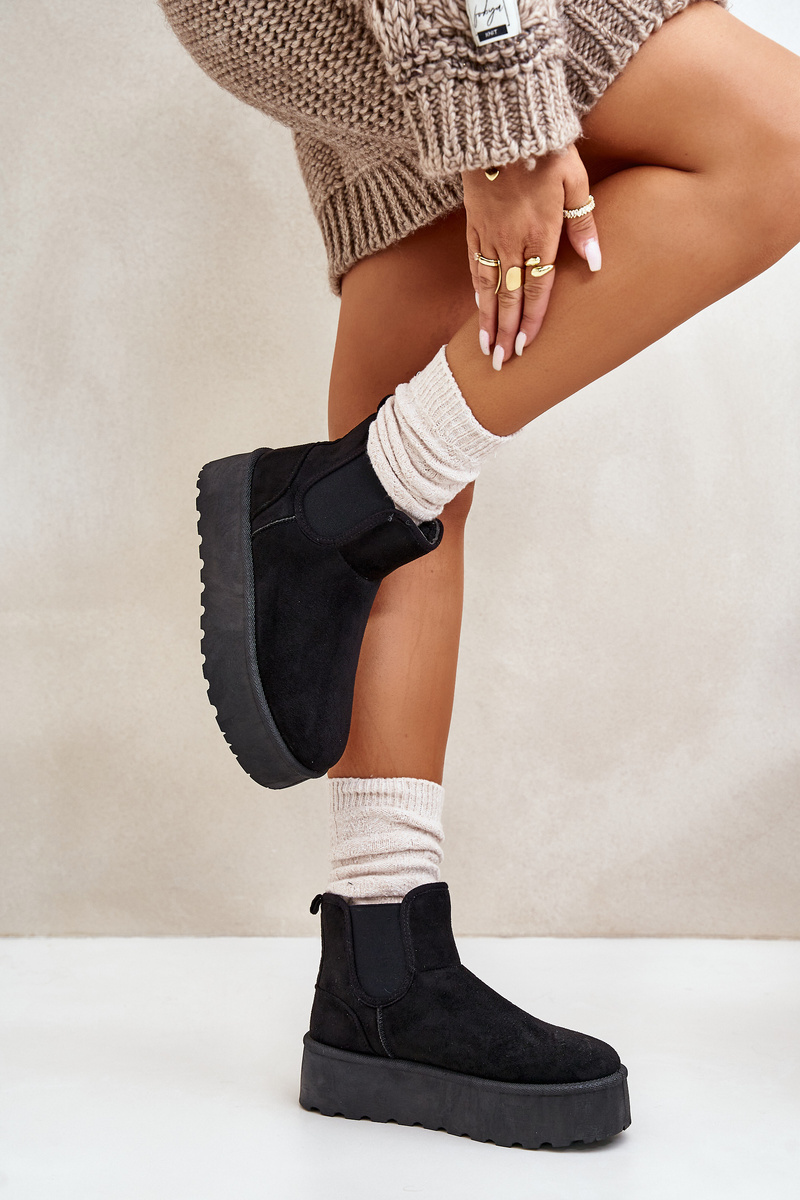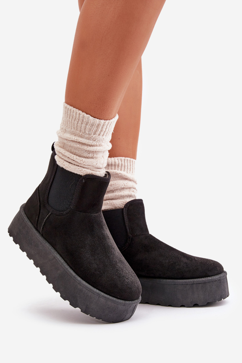 Жіночі зимові черевики на платформі з еластичними вставками Чорні Rialine