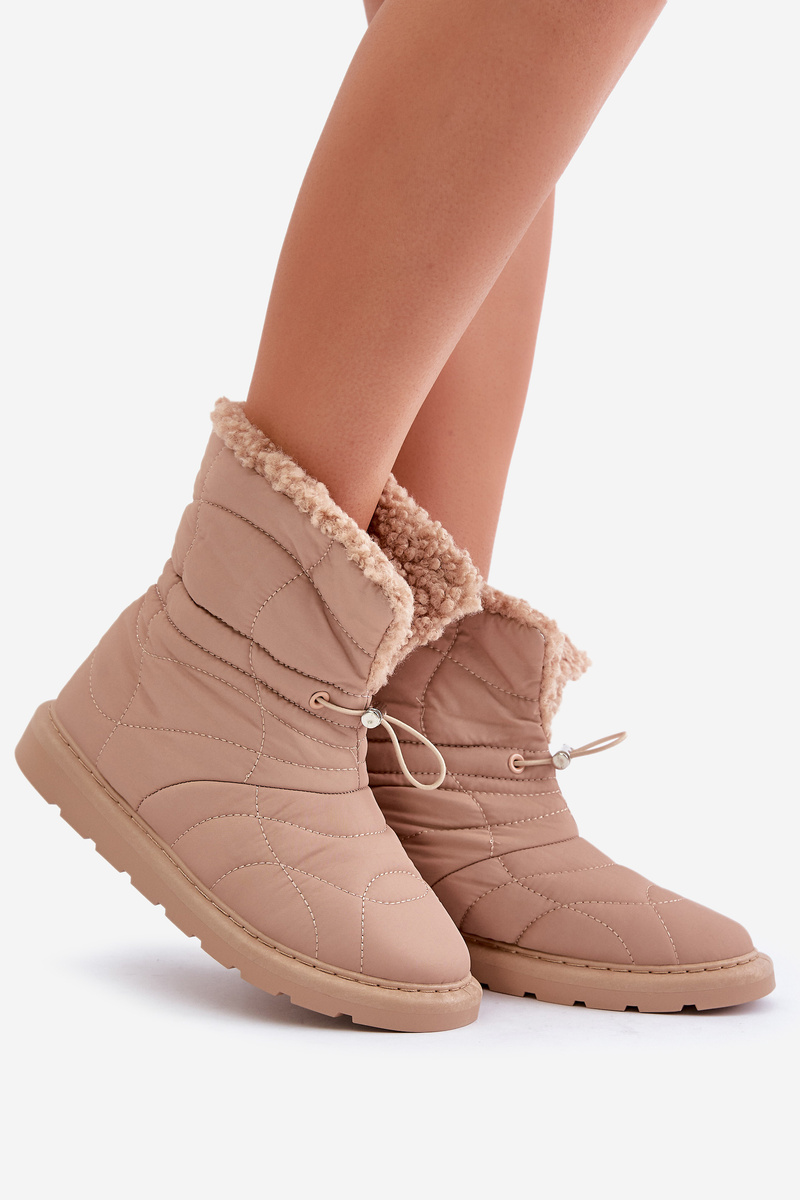 Жіночі зимові черевики на шнурку на підкладці з овчини Beige Vamidra