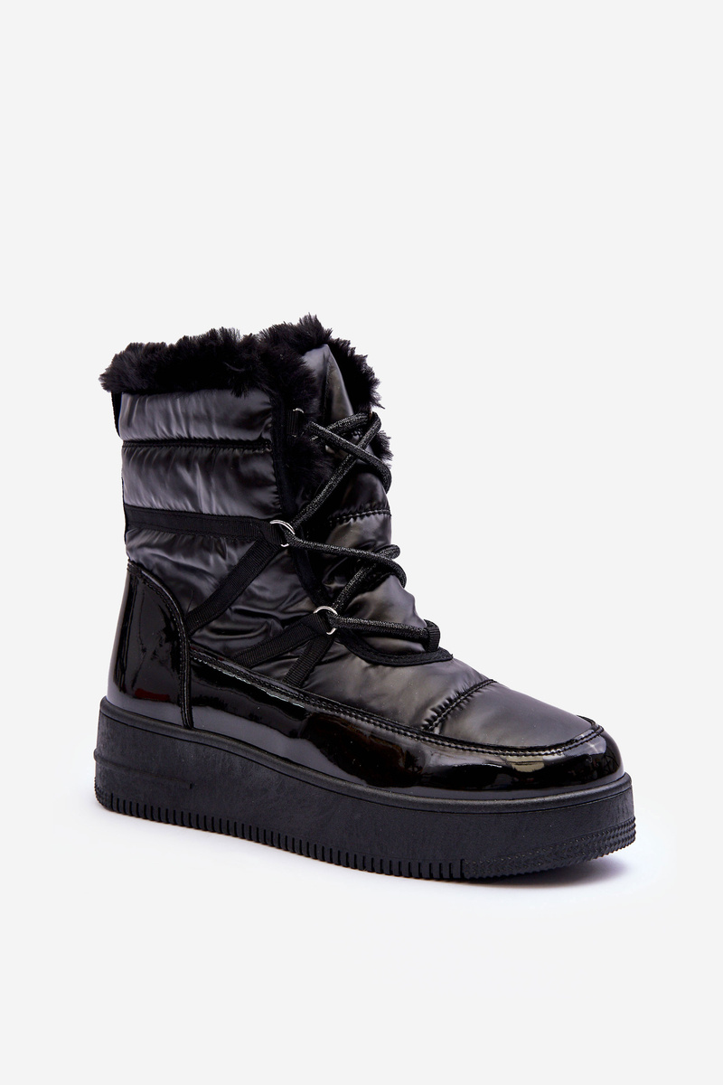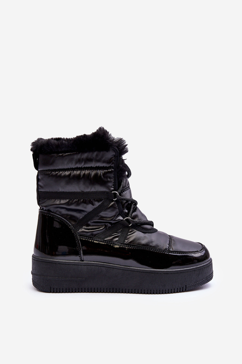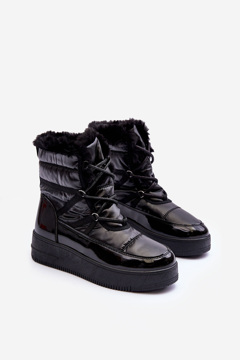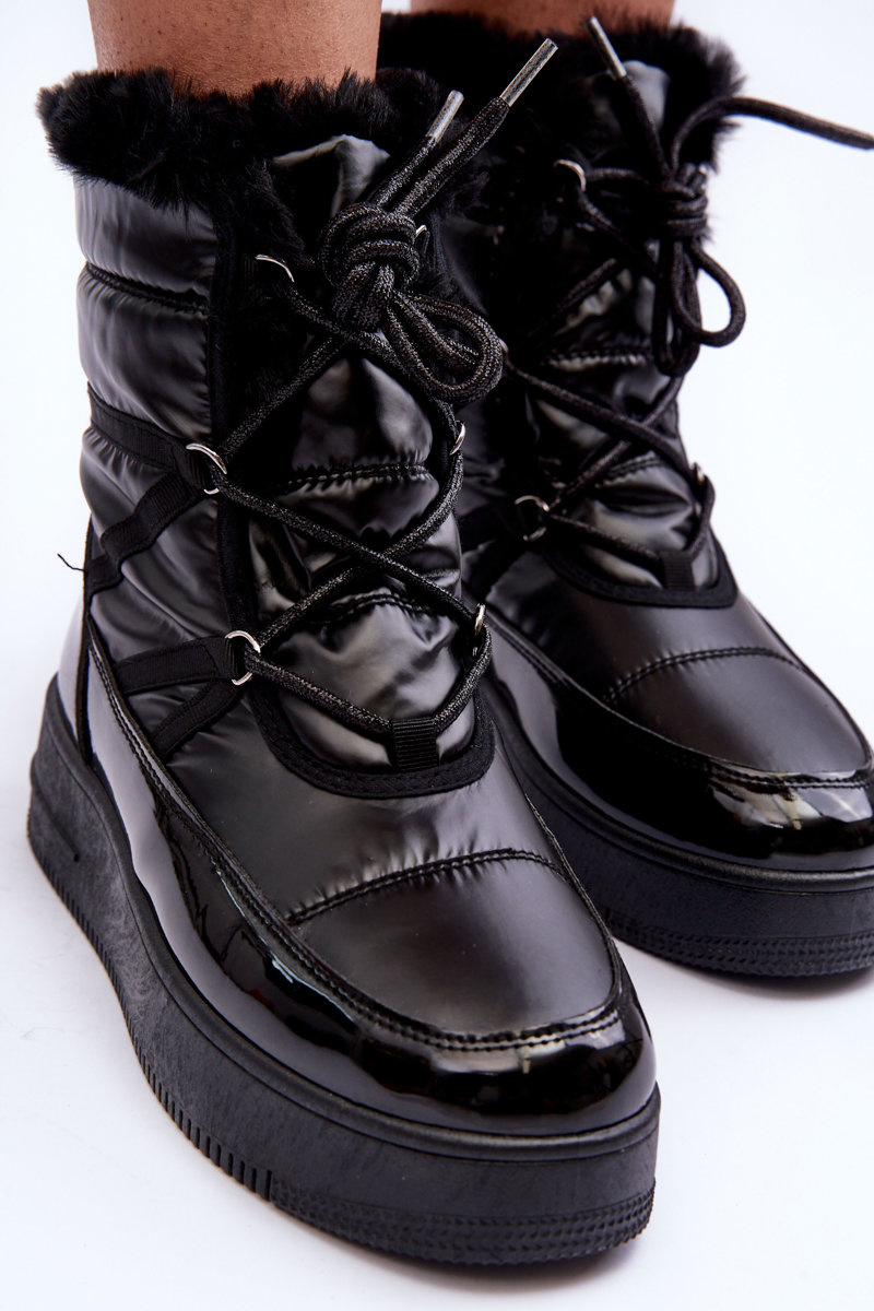 Жіночі зимові черевики на шнурівці зі штучним хутром чорні Lexxina