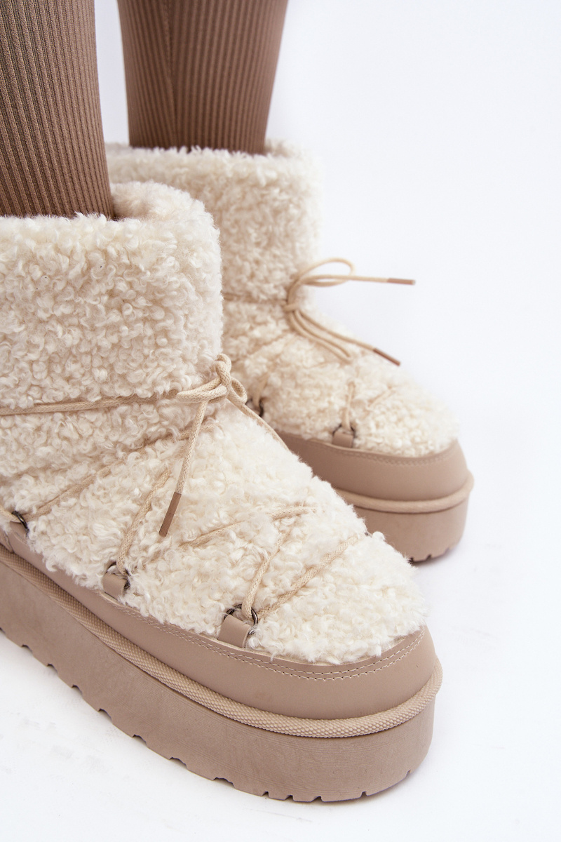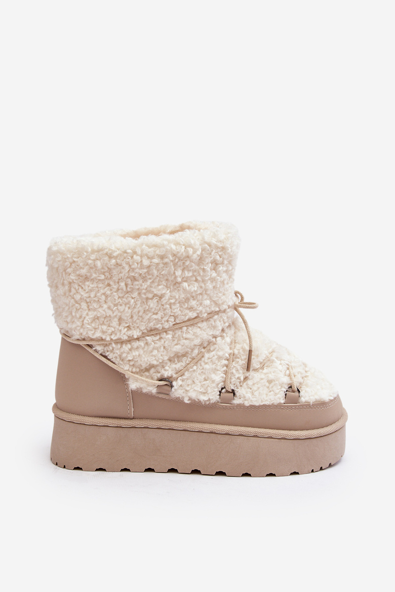Жіночі зимові черевики на шнурівці на товстій підошві бежеві Лосо