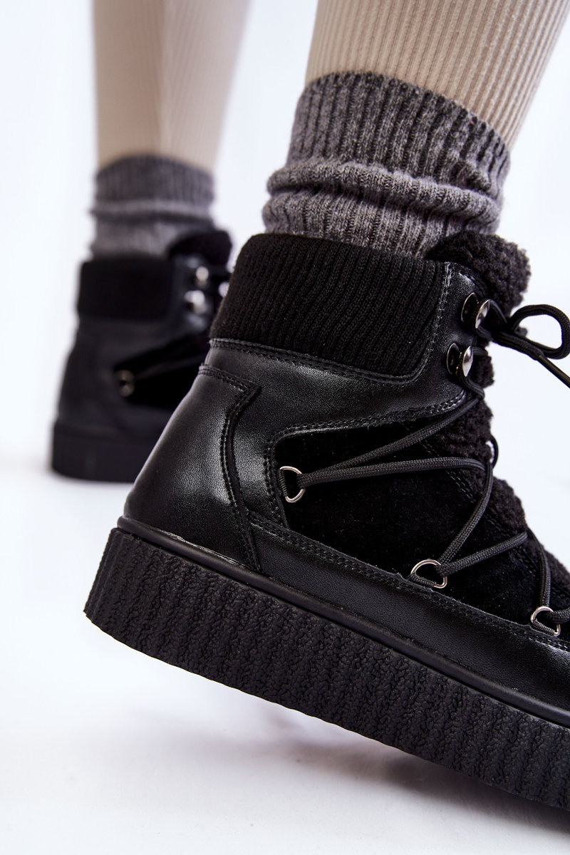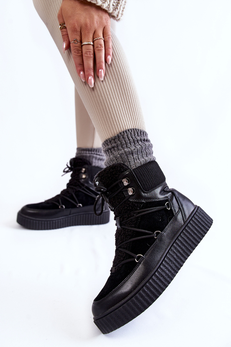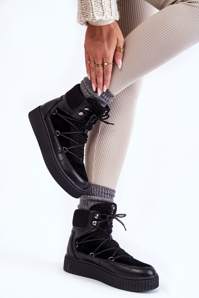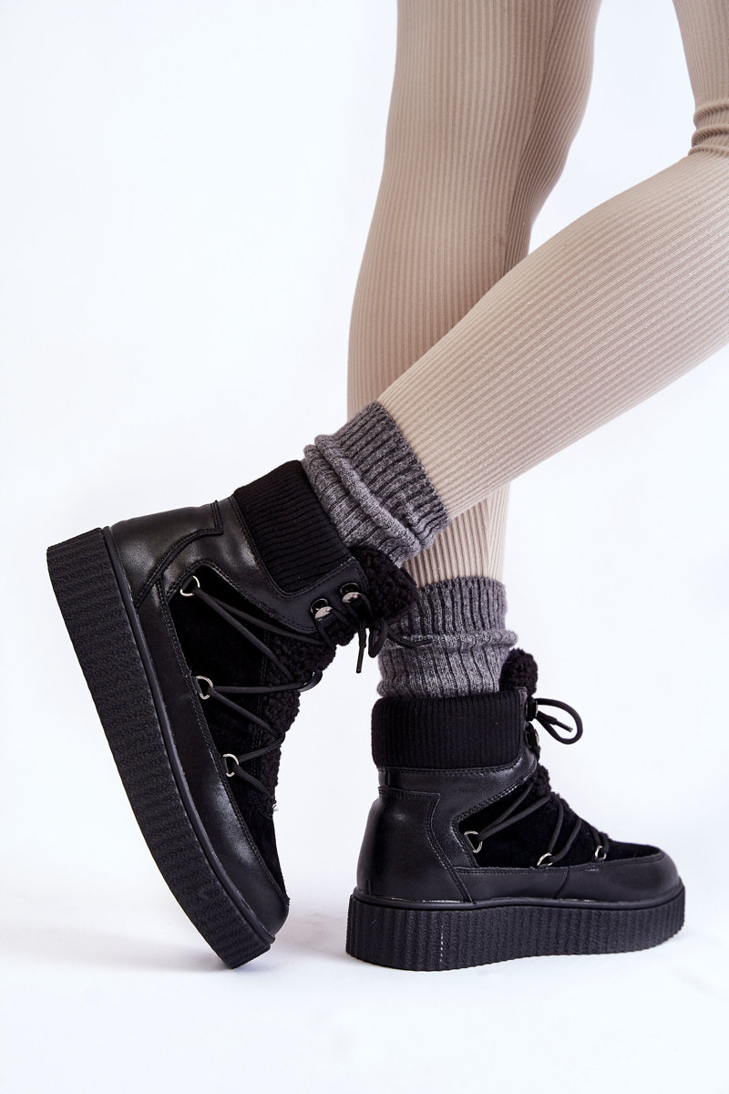 Жіночі чоботи - снігові чоботи ідеальні для холодних днів! Виконана з комбінації натуральної замші та еко шкіри. Вбудований на масивну платформу. Мають класичну шнурівку. Верх оброблений рантом, що дозволяє правильно підлаштуватися під ширину ноги. Крім того, чоботи мають посилений каблук. Зсередини утеплена приємним на дотик ніжним хутром. При виборі розміру скористайтеся таблицею розмірів.