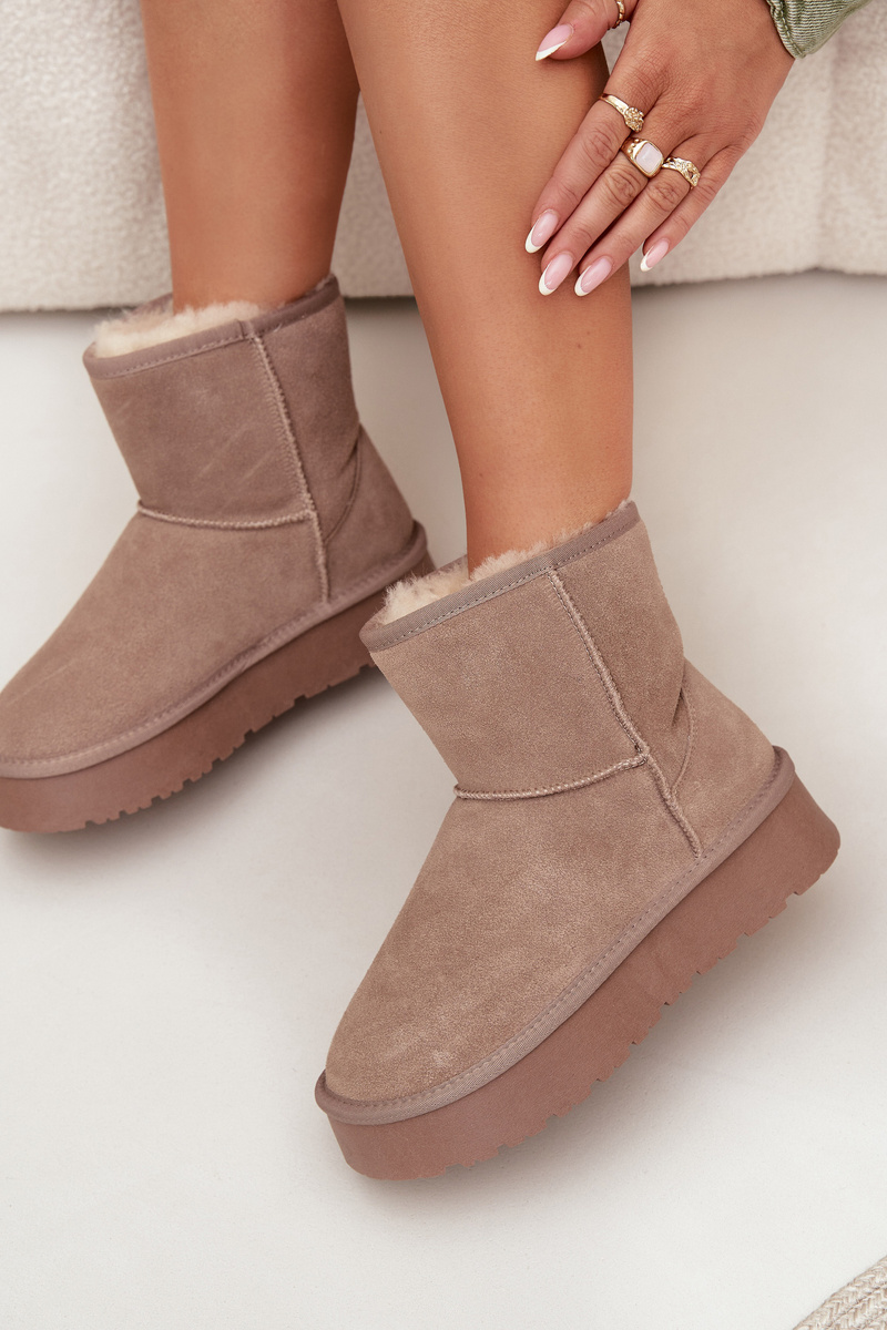 Жіночі зимові чоботи з натурального замшу. Внутрішня частина, оброблена м'яким хутром, гарантує комфорт і тепло навіть у холодні дні. Поставлені на платформі з гумового матеріалу, вони ефективно ізолюють від холодної поверхні, забезпечуючи комфорт під час щоденного носіння. Це ідеальний вибір для зимових виходів – практичний, модний і зручний. При виборі розміру, будь ласка, орієнтуйтеся на таблицю розмірів. Будь ласка, зверніться до розмірної сітки при виборі розміру.