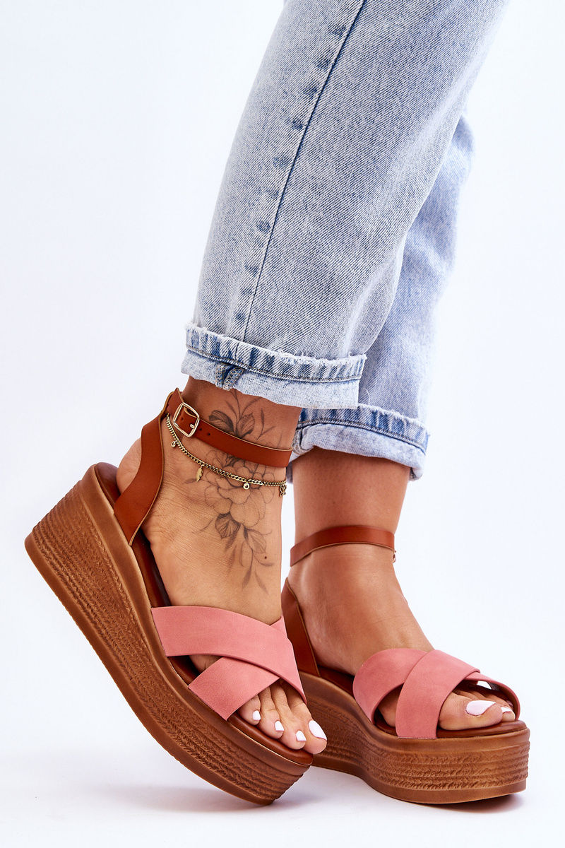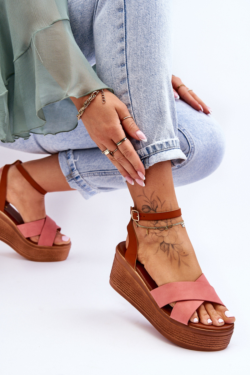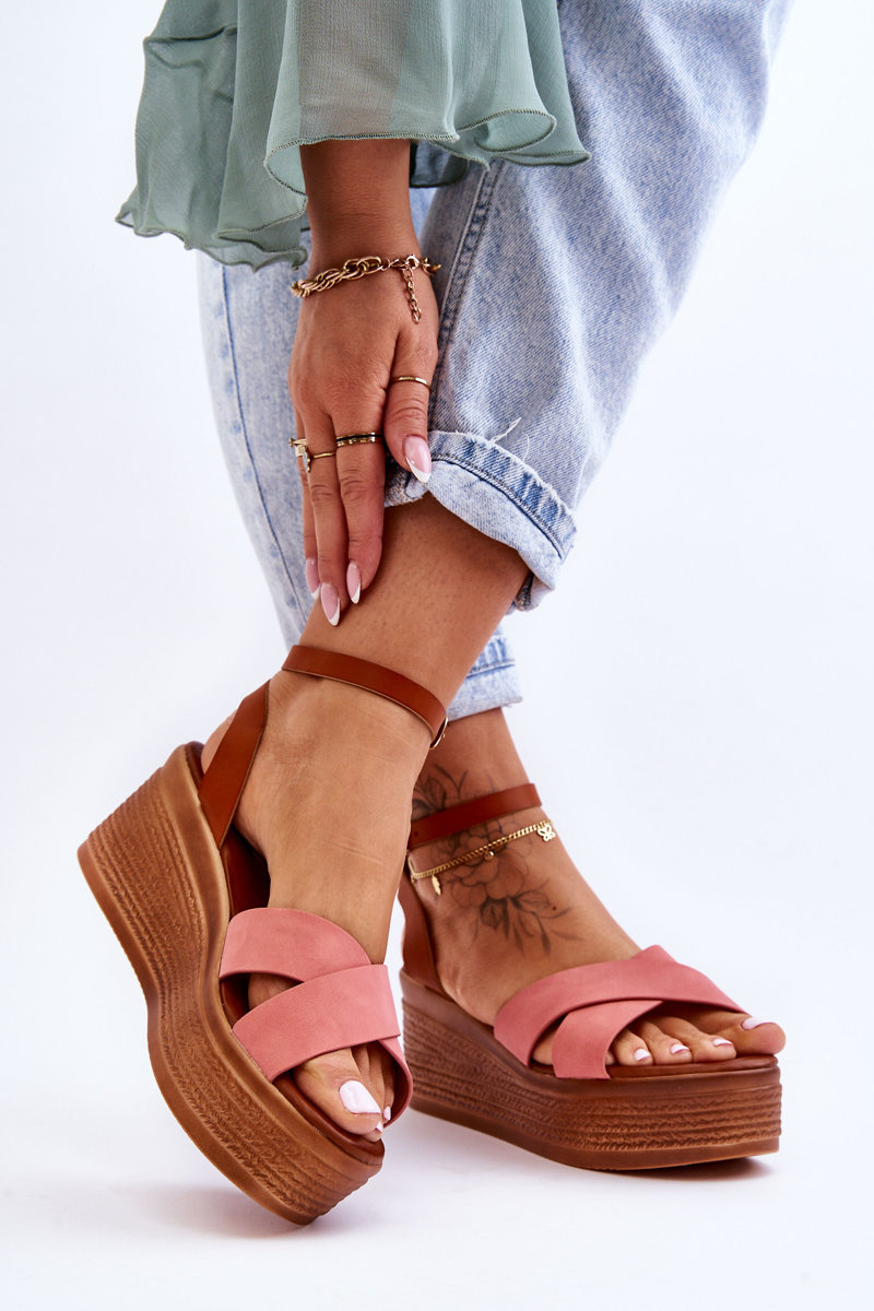 Жіночі зручні босоніжки на танкетці Коричнево-рожеві Laurie